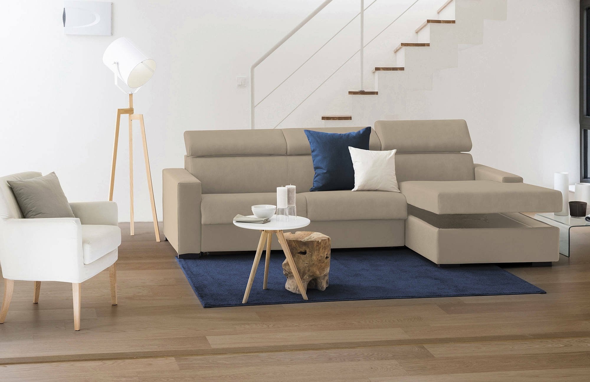 Adima Canapé-lit, Canapé d'angle, 100% Made in Italy, Canapé avec ouverture pivotante, Péninsule de rangement gauche, avec accoudoirs fins, 260x95h90 cm, Beige