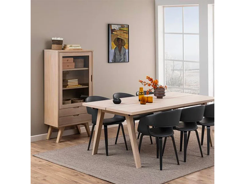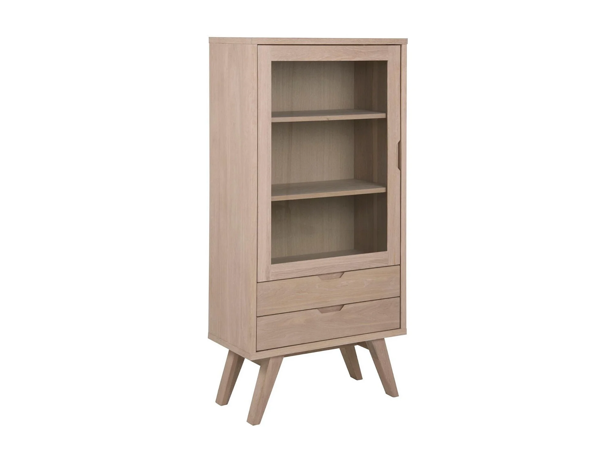 Align Vitrine, 145 cm hauteur, 1 porte vitrée, 2 tiroirs, chêne.