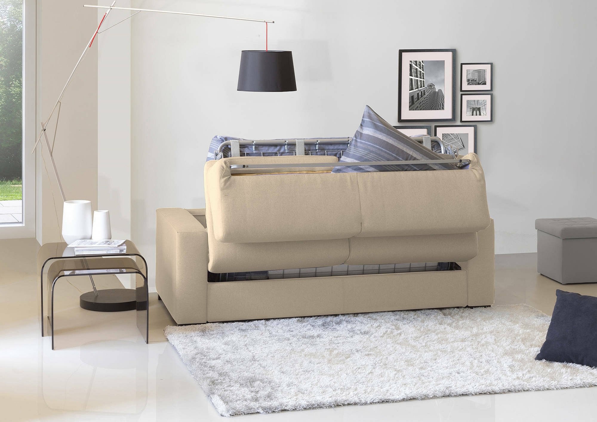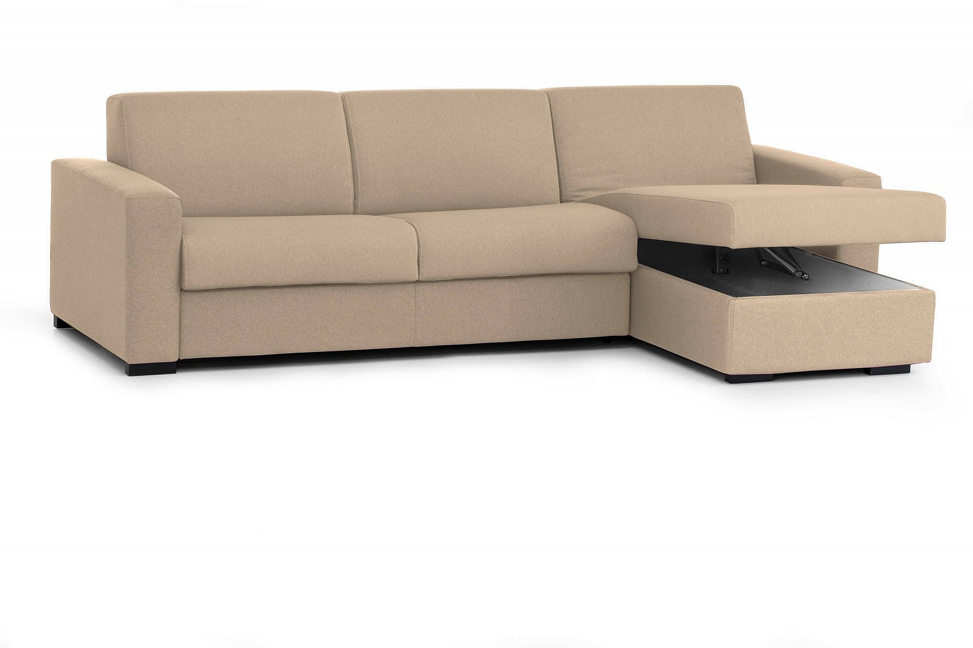 Sofá-cama Alberta, Sofá de canto, 100% Fabricado na Itália, Sofá com abertura giratória, com península de arrumação direita, com braços standard, 280x95h85 cm, Bege
