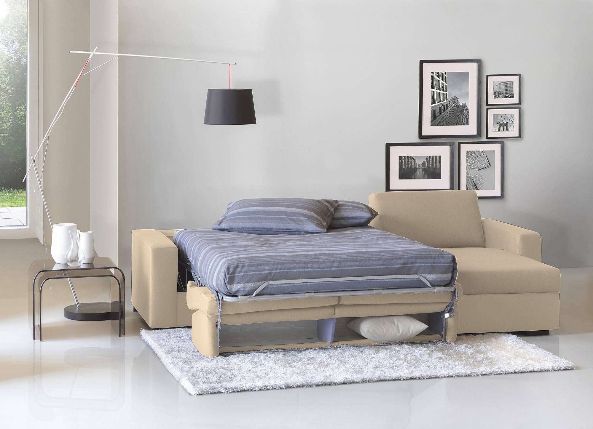 Adima Canapé-lit, Canapé d'angle, 100% Made in Italy, Canapé avec ouverture pivotante, Péninsule de rangement gauche, avec accoudoirs fins, 260x95h90 cm, Beige