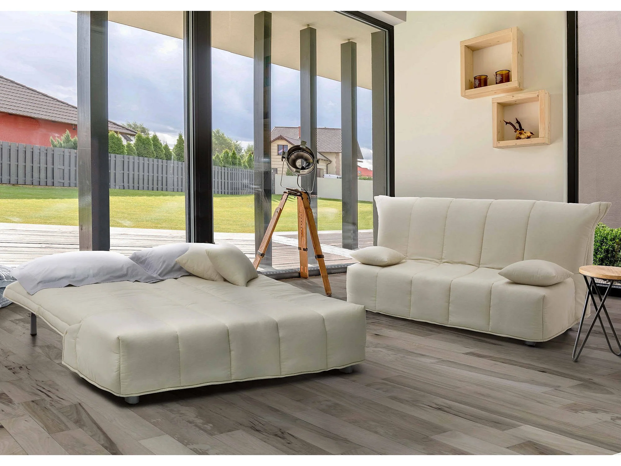 Alisee Canapé-lit, canapé 2 places, 100% Made in Italy, Canapé de salon avec ouverture trolley, en tissu rembourré, avec coussins inclus, 125x90h85 cm, Beige