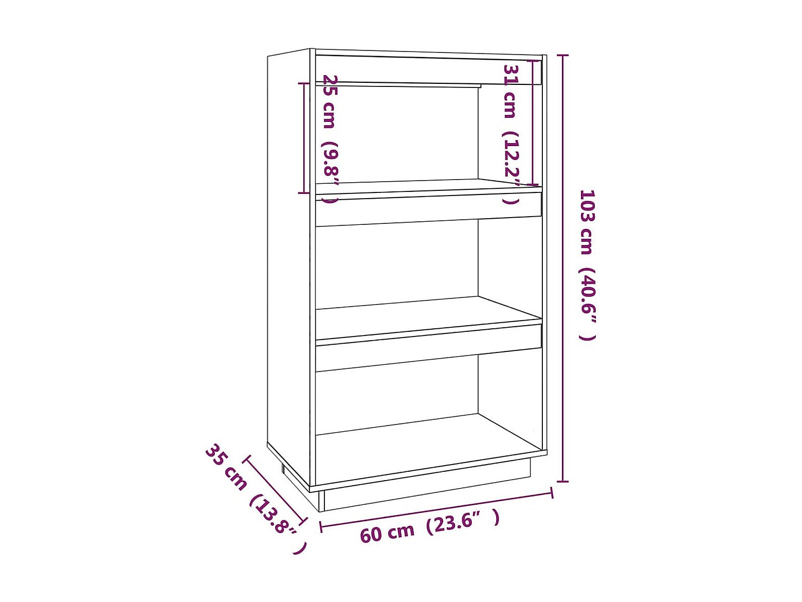 Alisha Bibliothèque/Séparateur de pièce Noir 60x35x103 cm Pin massif