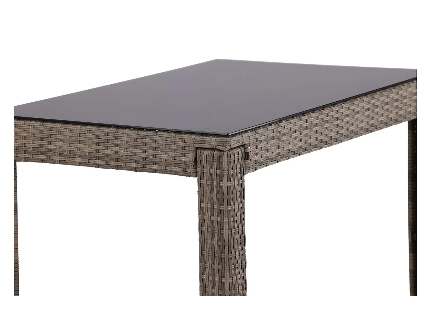 Table de jardin 150x90x75 cm Verre trempé et poly rotin Gris