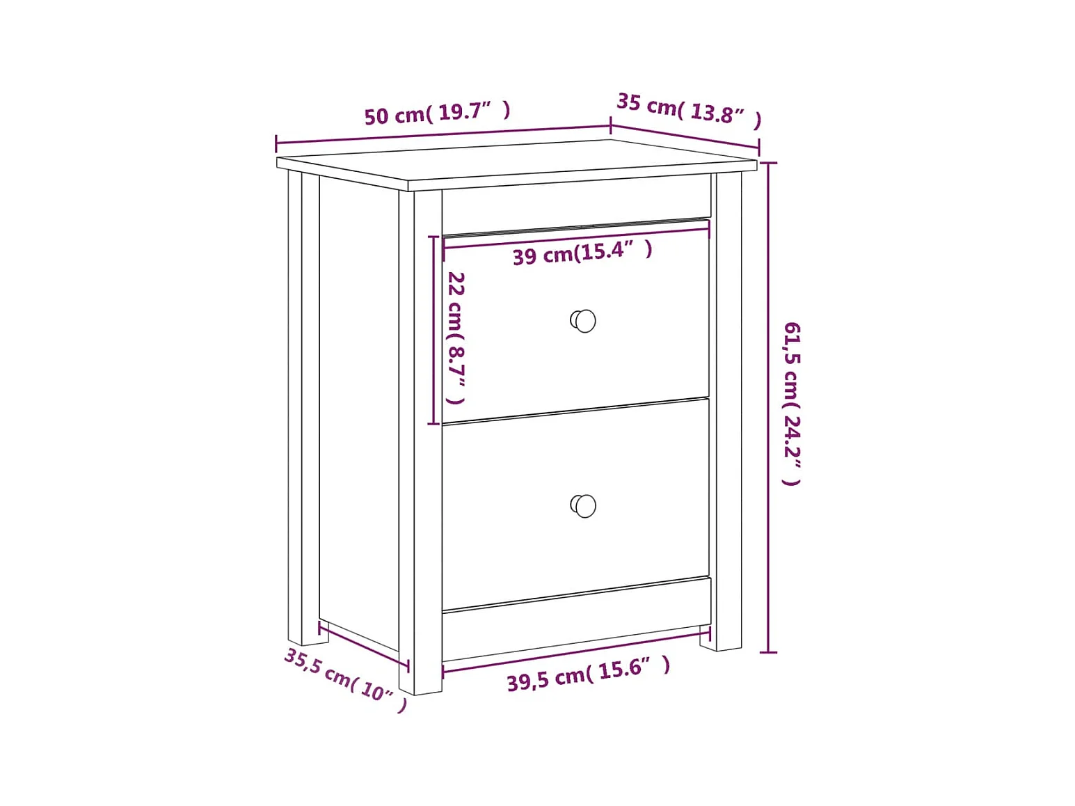 Kettering Table de chevet 40x35x61,5 cm Bois de pin massif