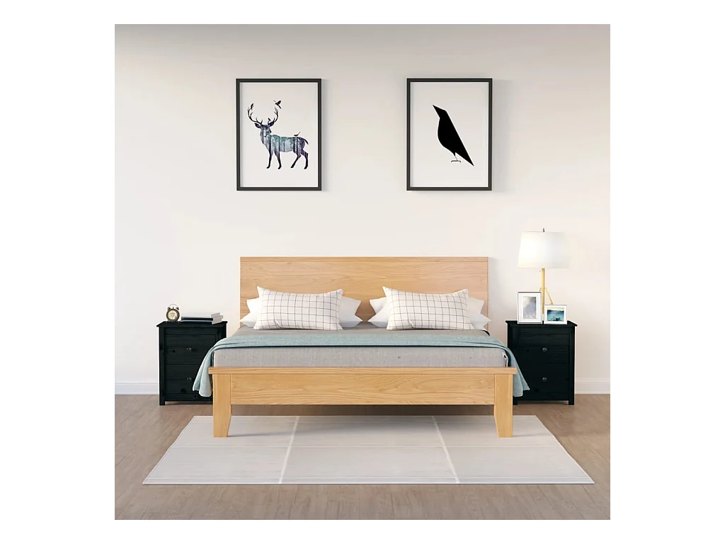 Älvängen Tables de chevet 2 pcs Noir 50x35x61,5 cm Bois de pin massif