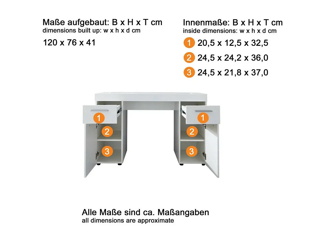Bureau 2 portes 2 tiroirs laqué blanc Ellia