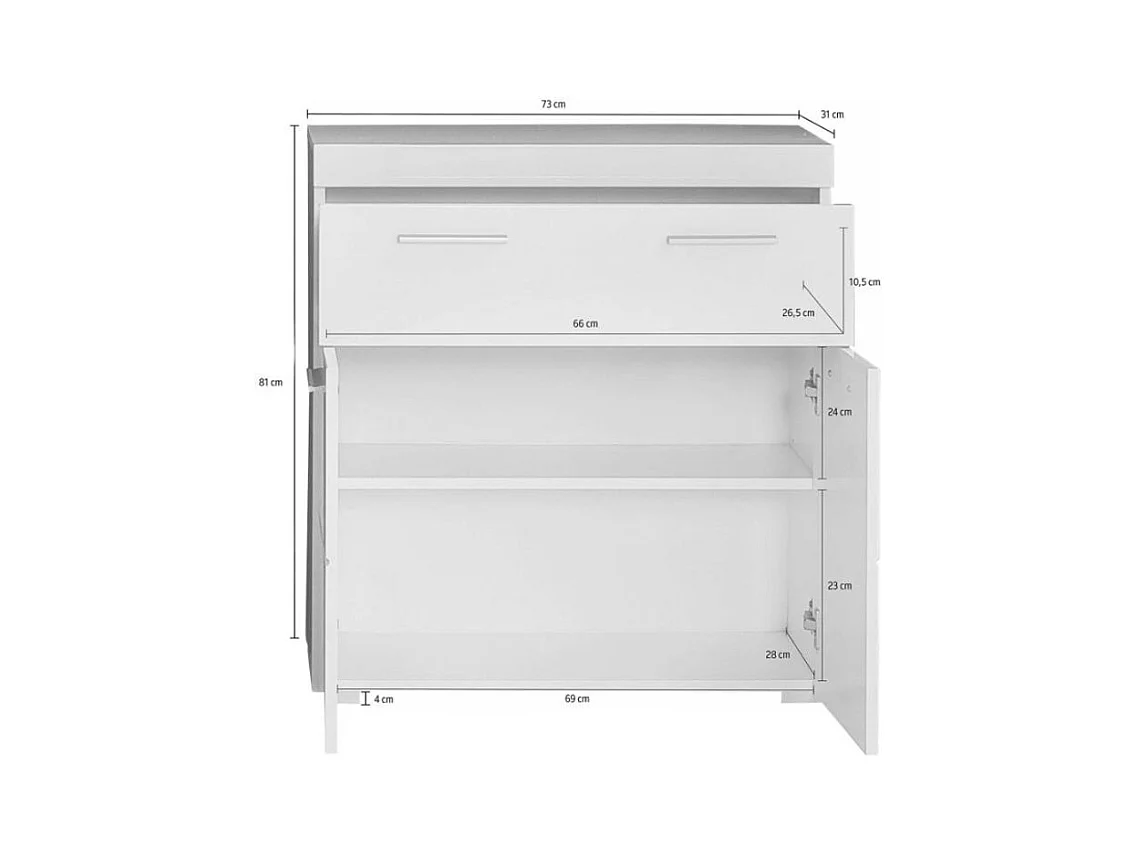 Meuble bas gris brillant 1 porte 1 tiroir Kelia 37cm