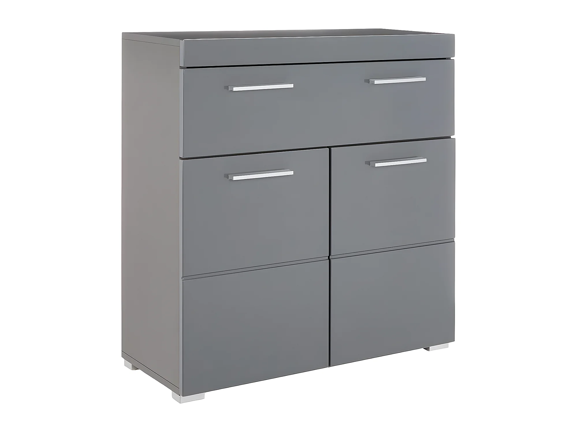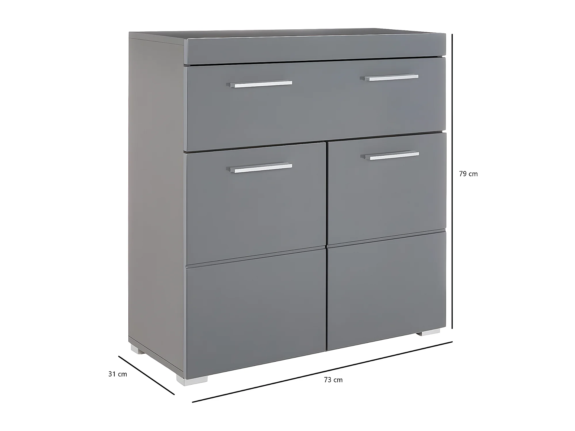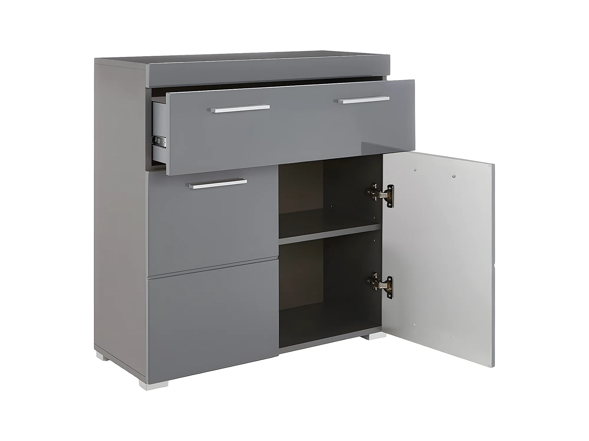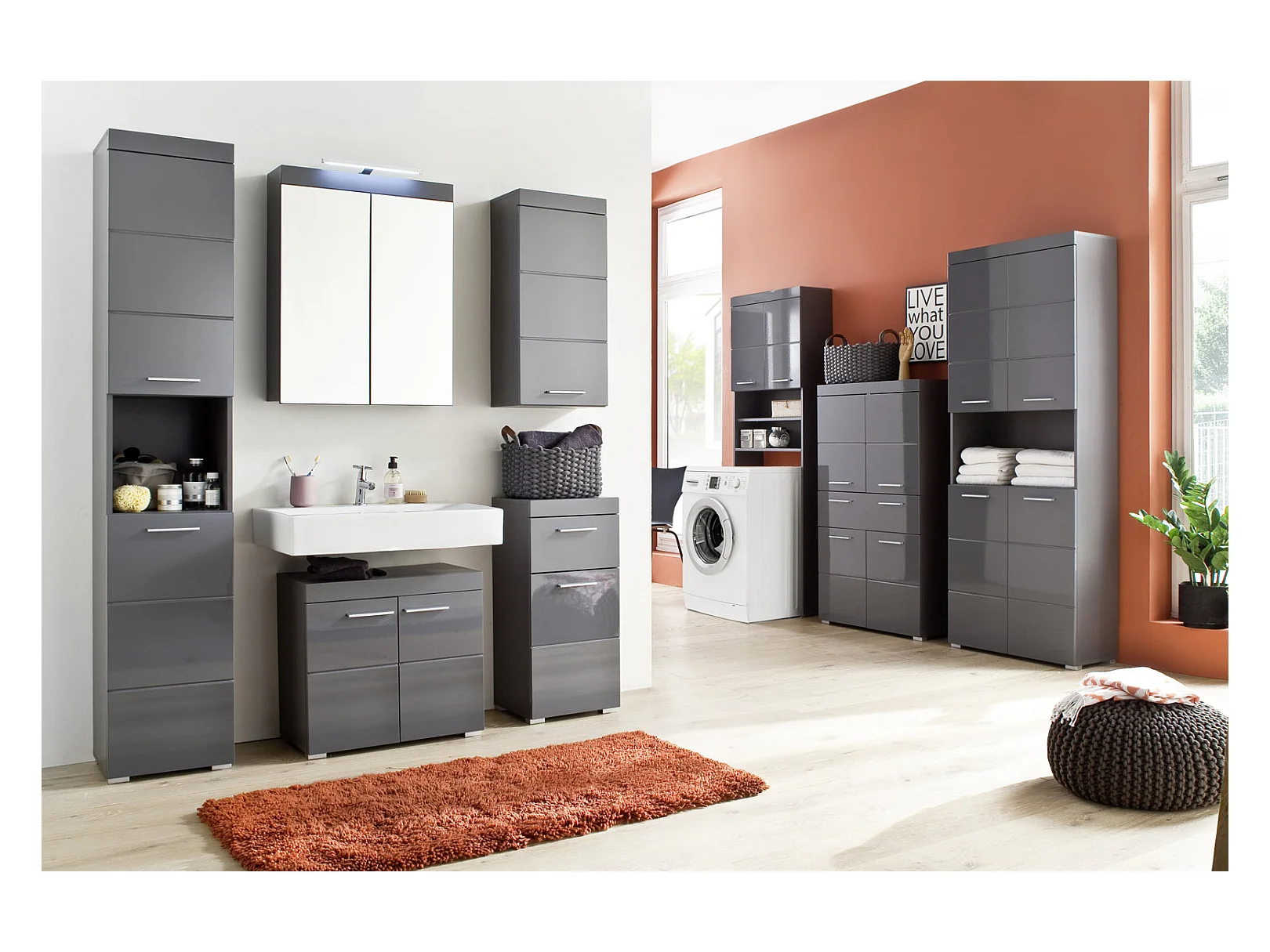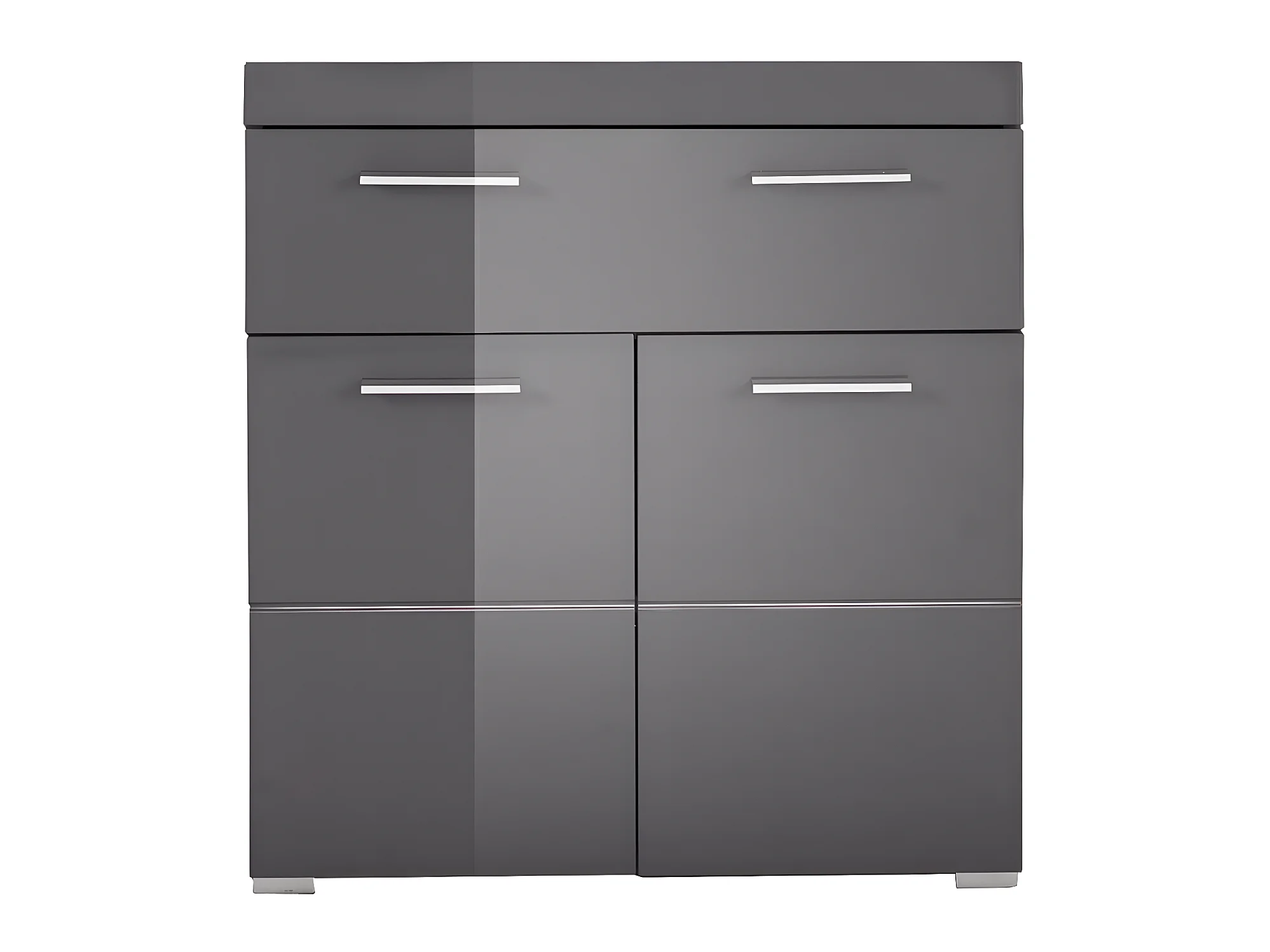 AmandaMando Armoire de rangement pour salle de bain, 2 portes, 1 tiroir, gris, gris brillant.