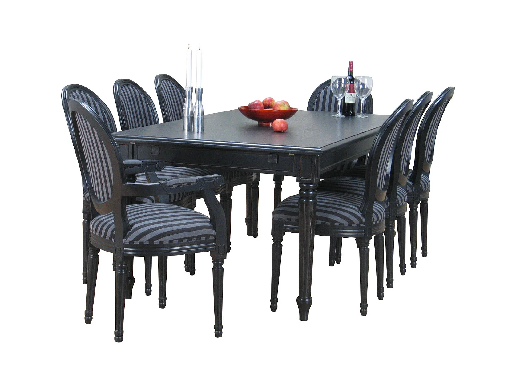 Amaretta Ensemble de salle à manger 100x180/280, 2 extensions inclues, noirs m 2+6 chaises rococo vintage noir/noir.
