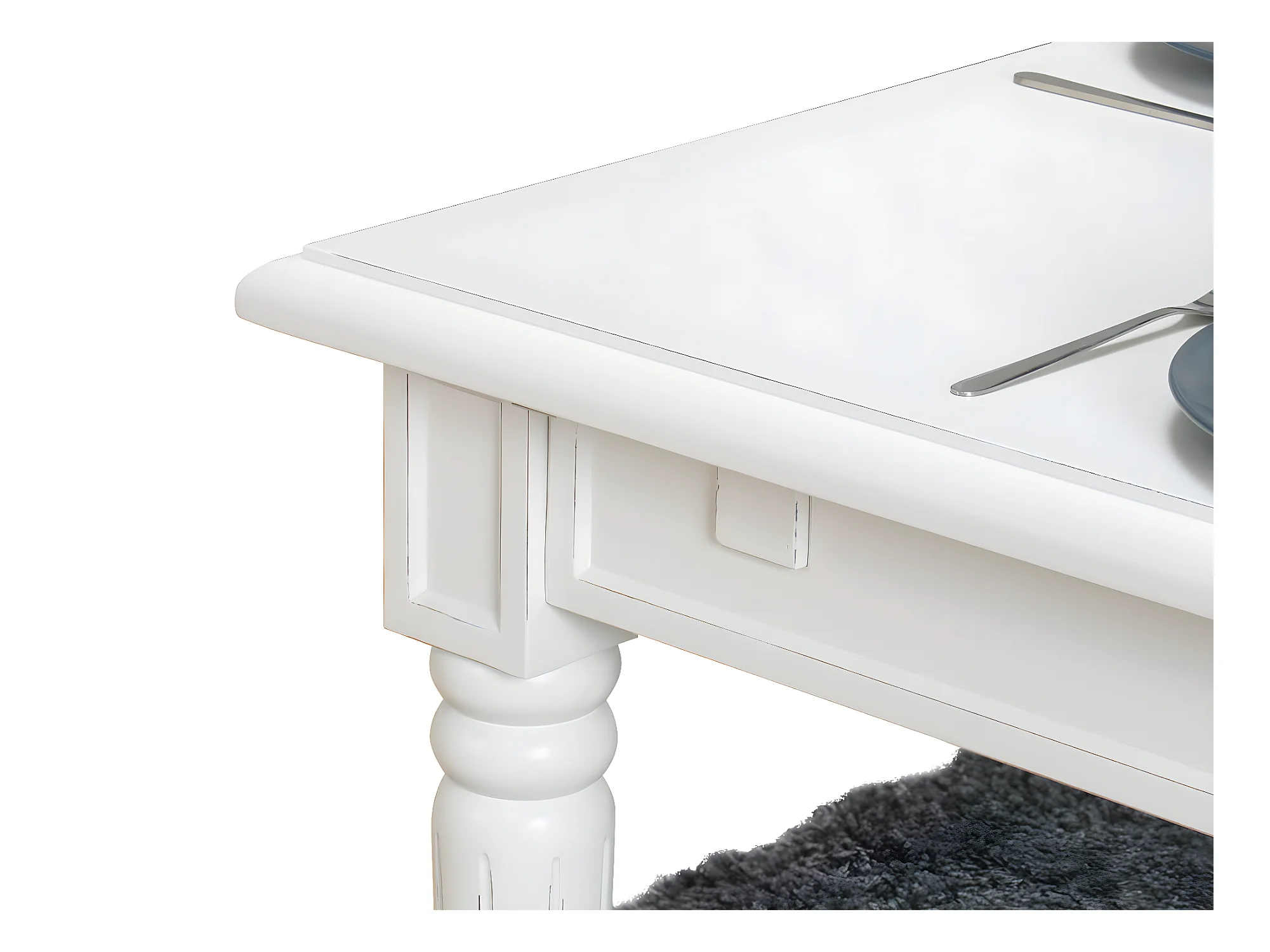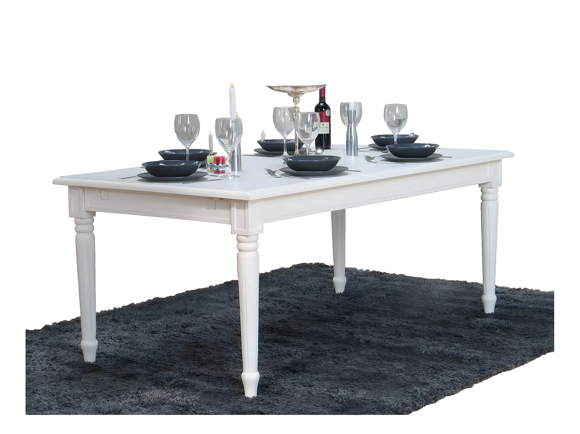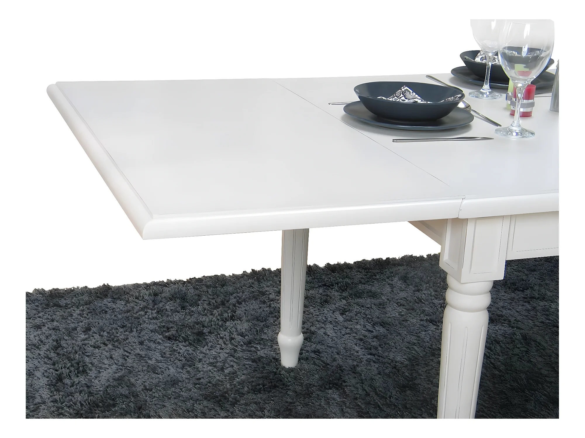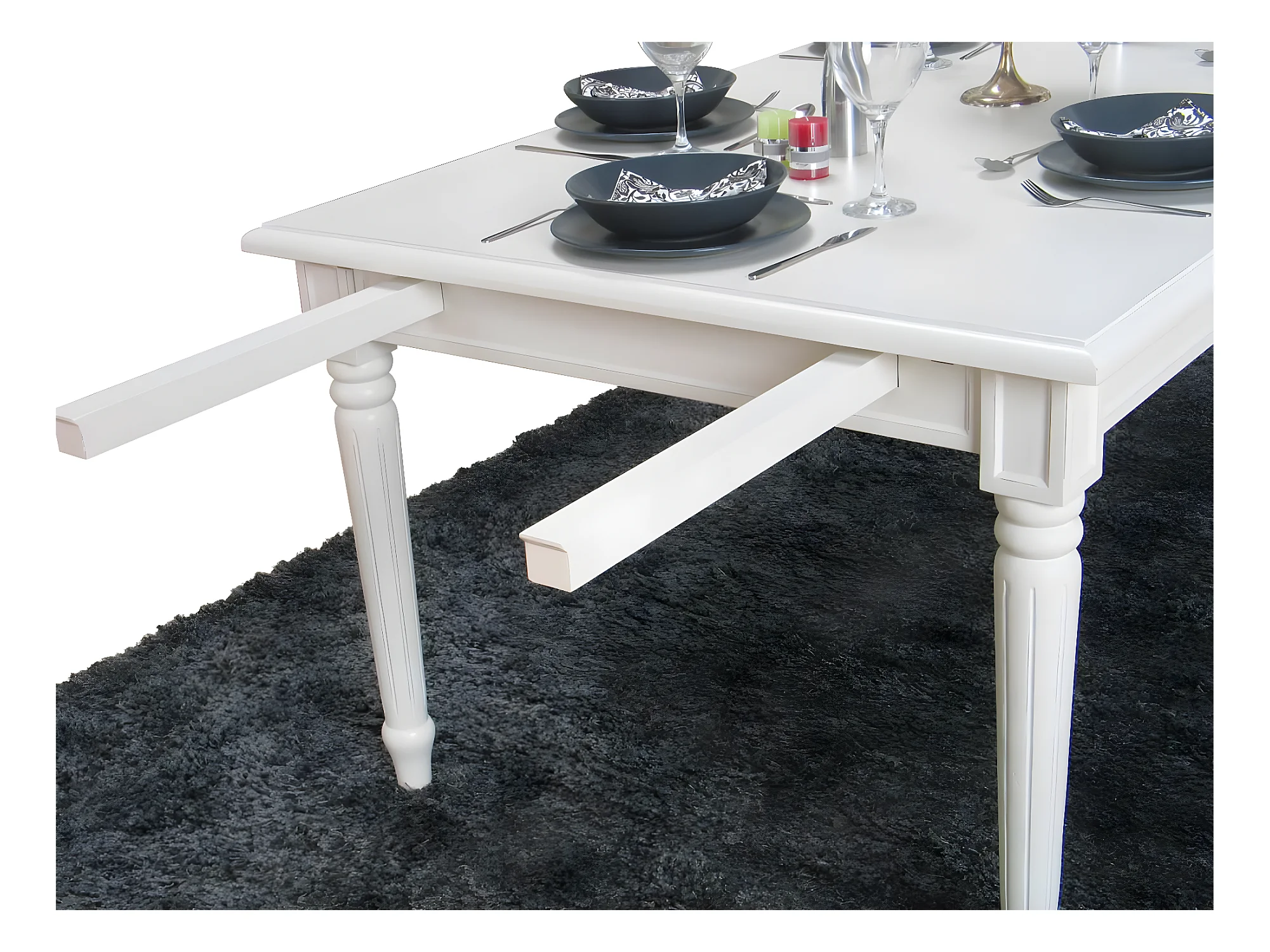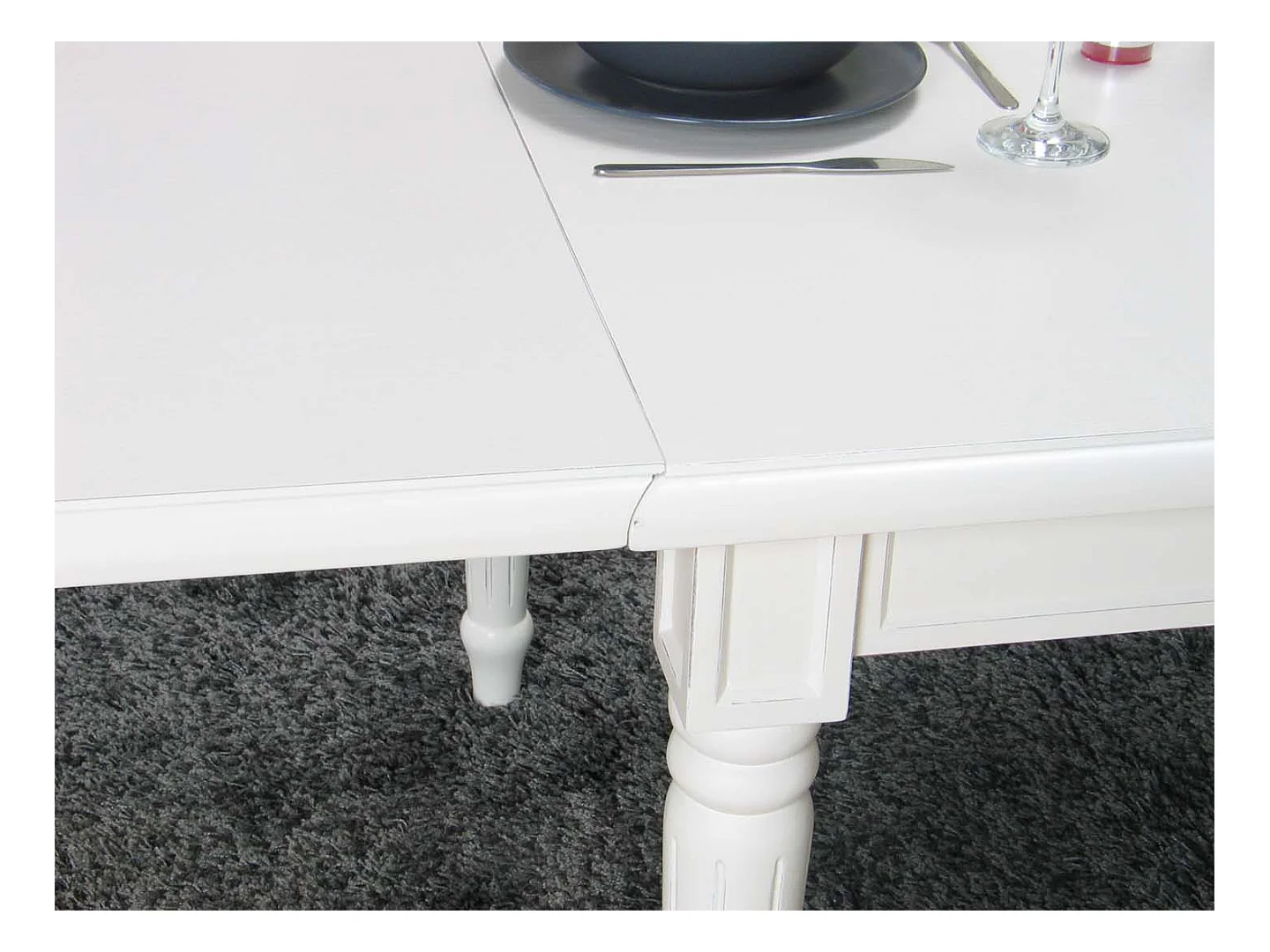 Amaretta Ensemble de salle à manger 100x180/280, 2 extensions inclues, vieux blanc avec chaises rococo vieux blanc/beige.