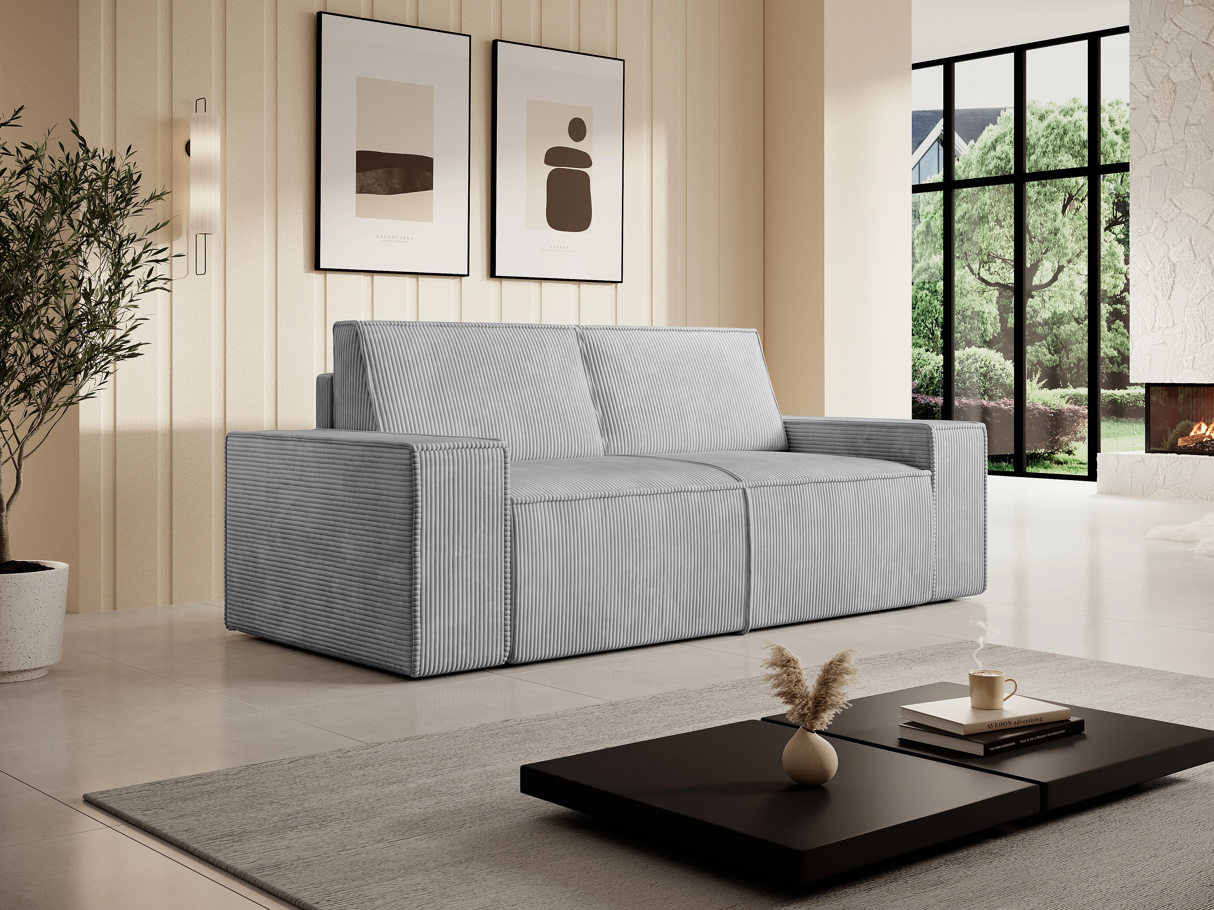 Canapé 2 places en velours côtelé gris clair AMELIA
