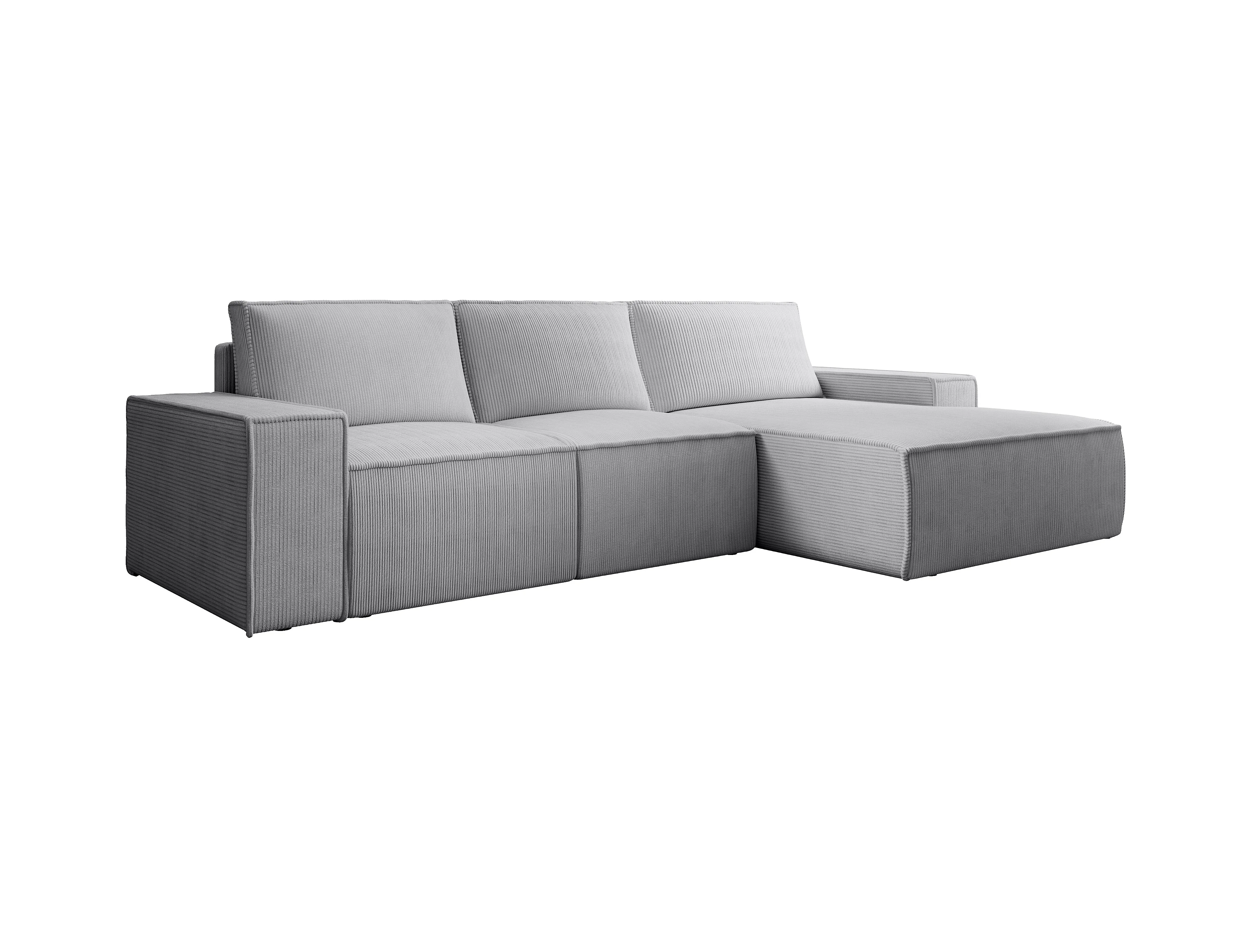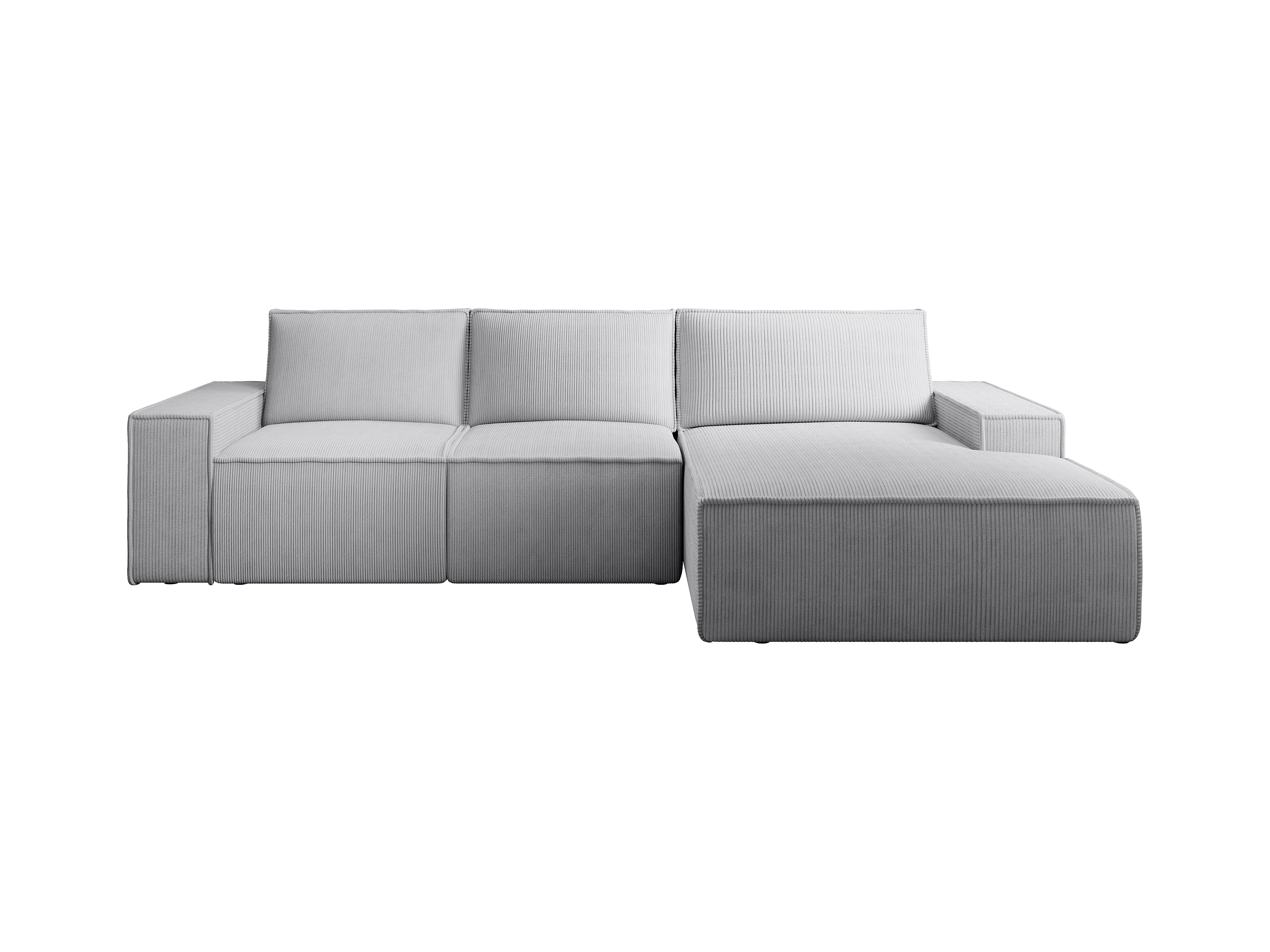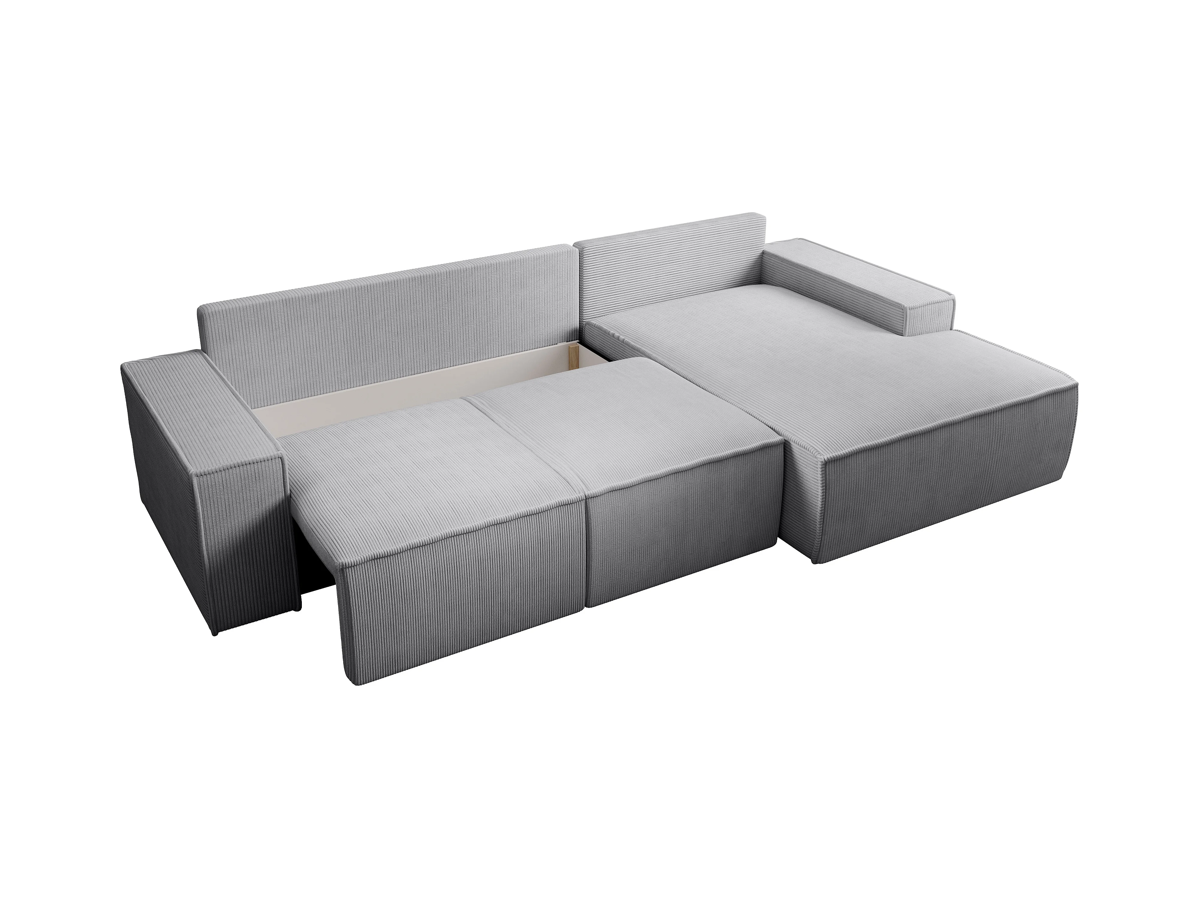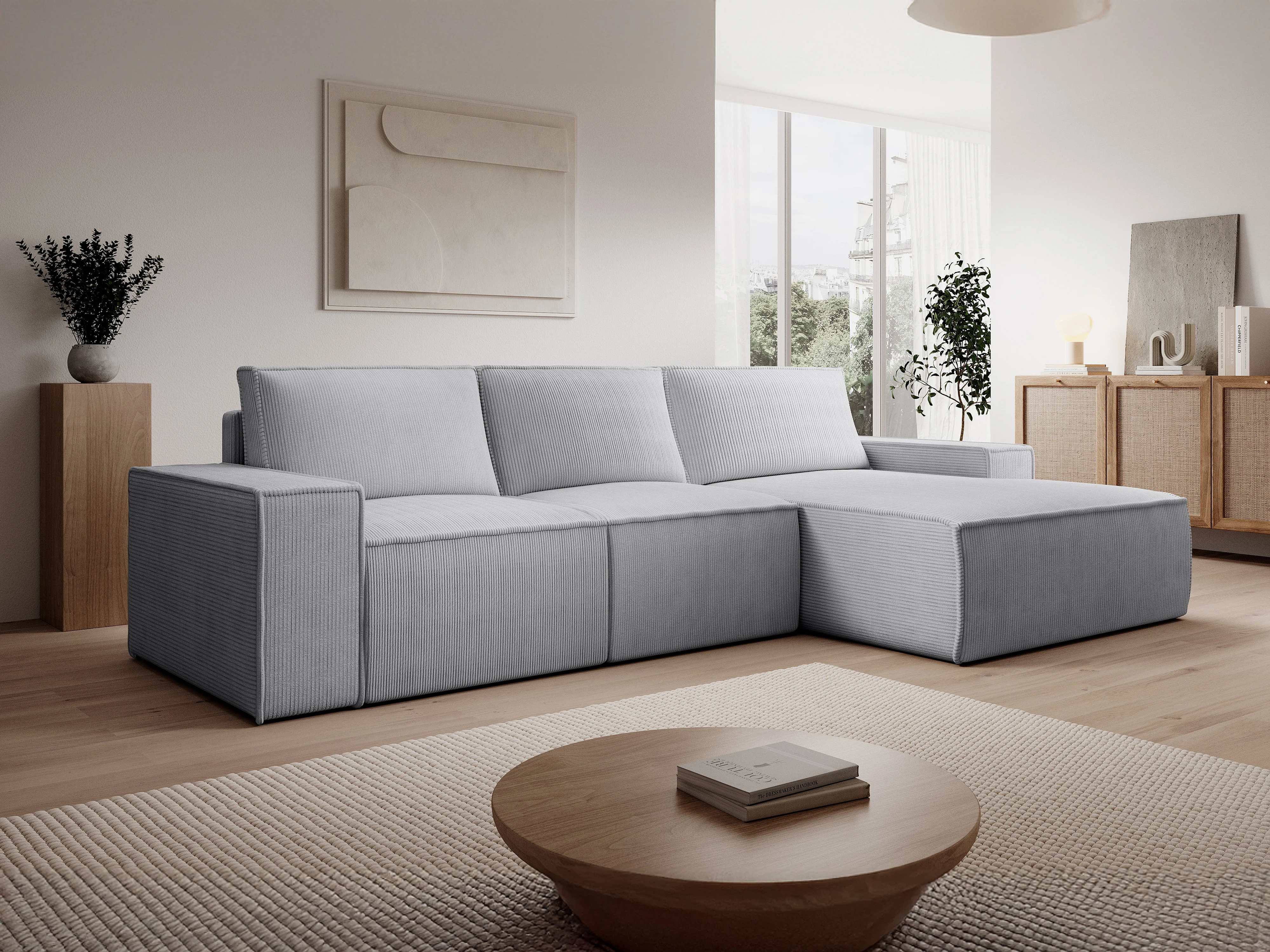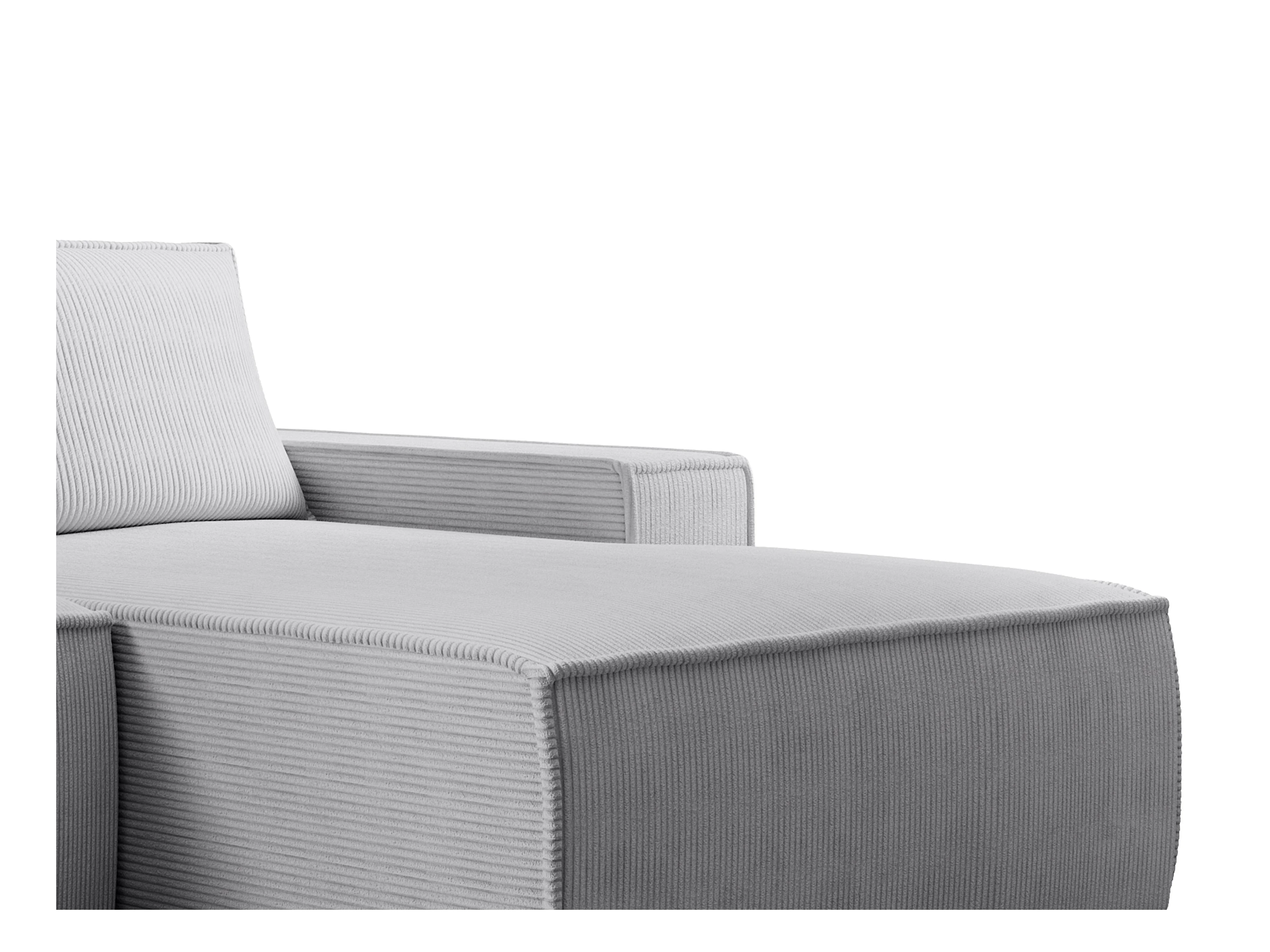 Grand canapé d'angle droit convertible en velours côtelé gris clair AMELIA
