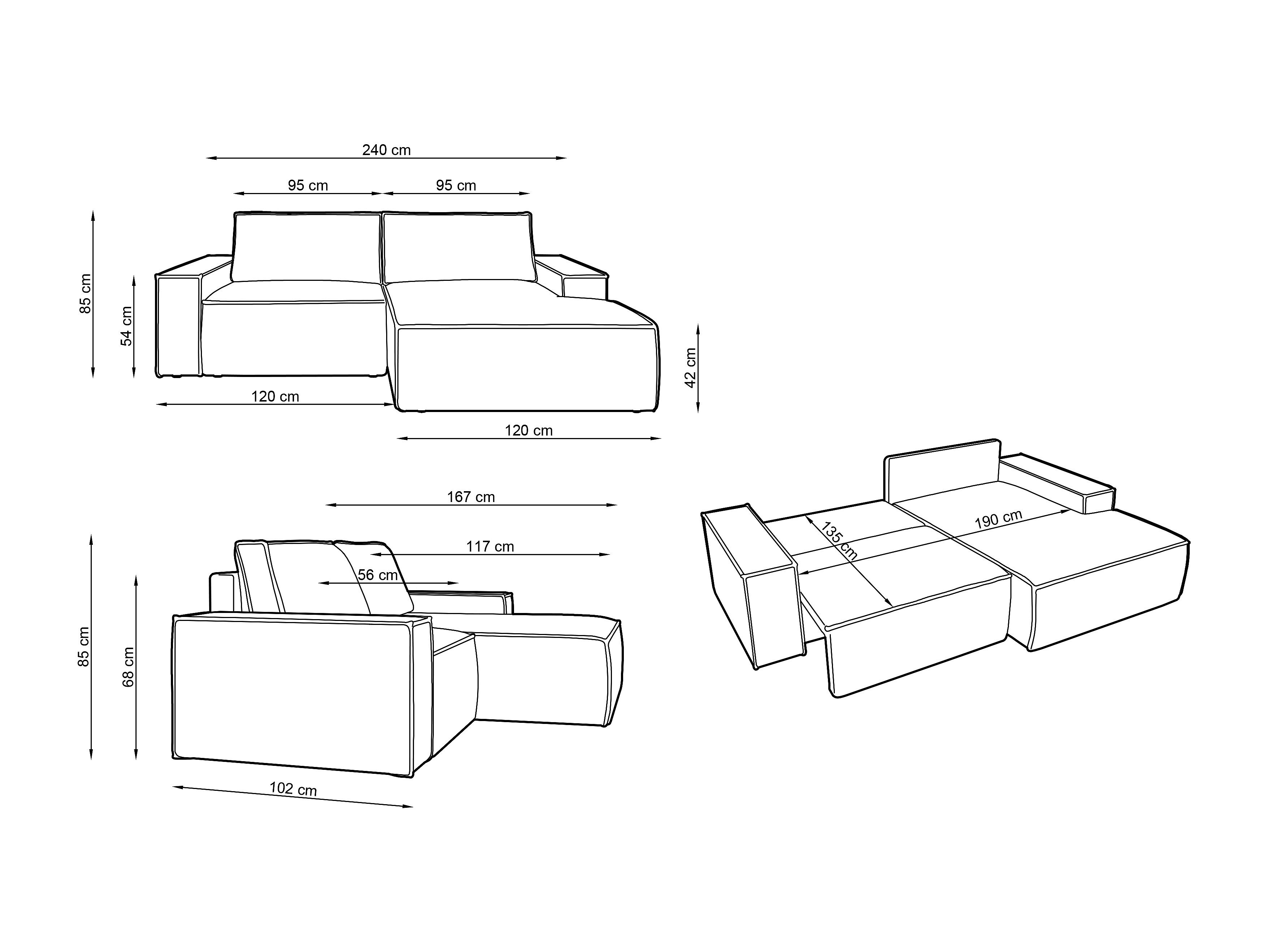 Petit canapé d'angle droit convertible en velours côtelé beige AMELIA