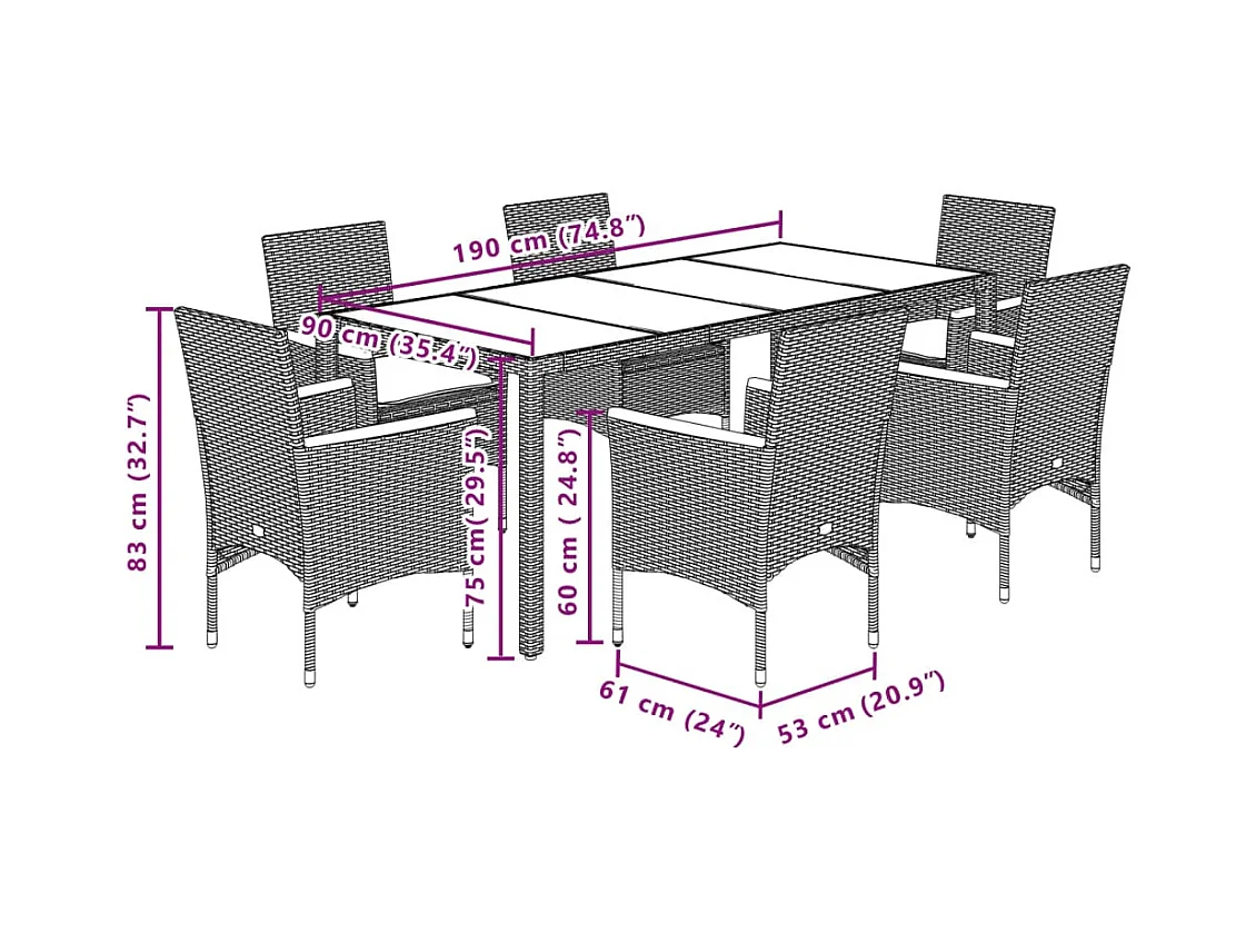 Garden Furniture - Ensemble à manger de jardin et coussins 7 pcs gris rotin
