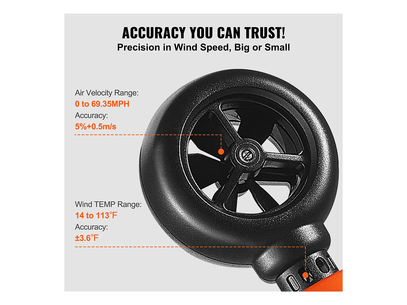 Anémomètre Portable SucceBuy, -10 ℃ à 45 ℃ Mesure Vitesse du Vent, Température du Vent