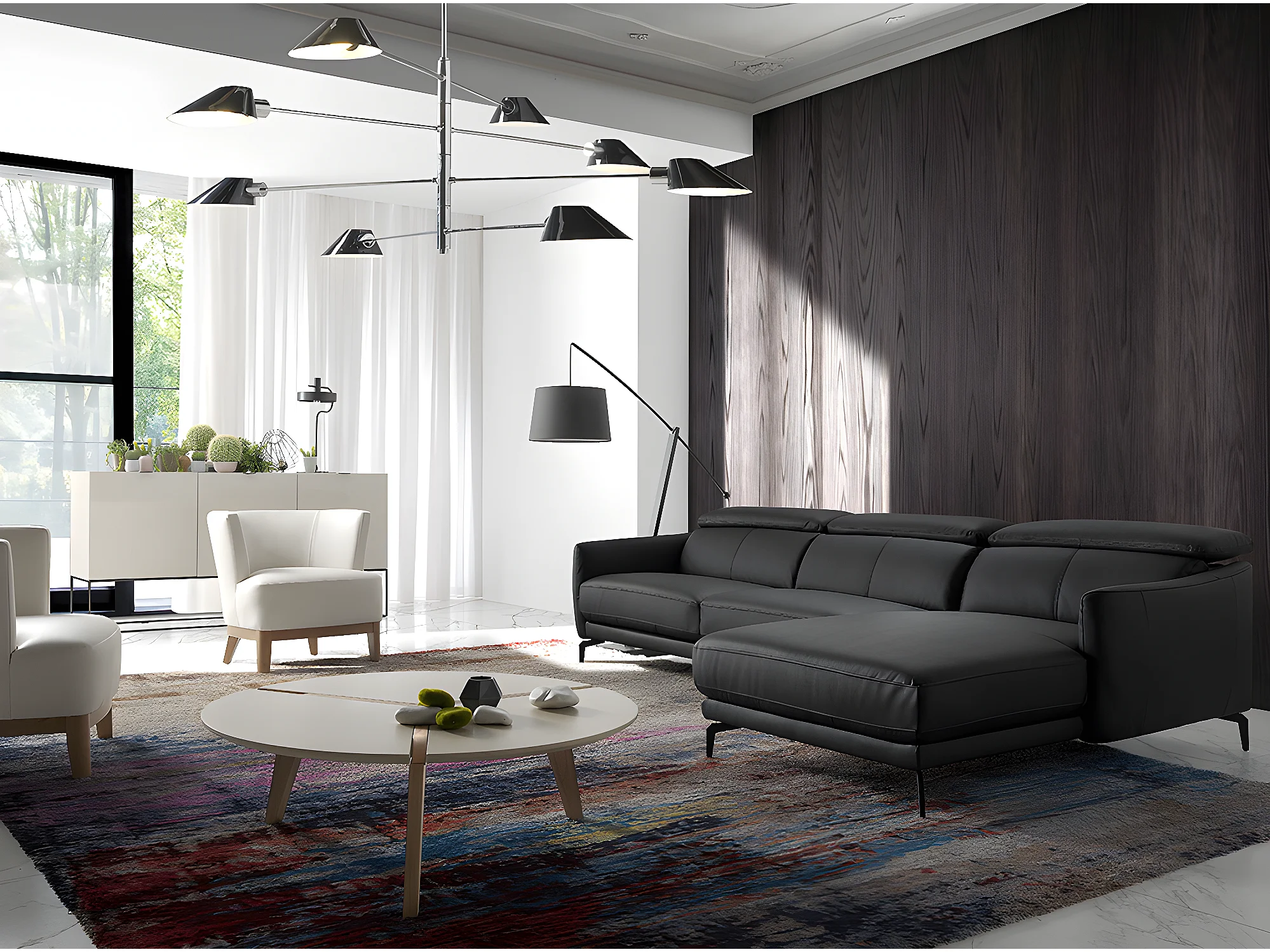Buffet en bois gris perle et acier noir 3054 ANGEL CERDA