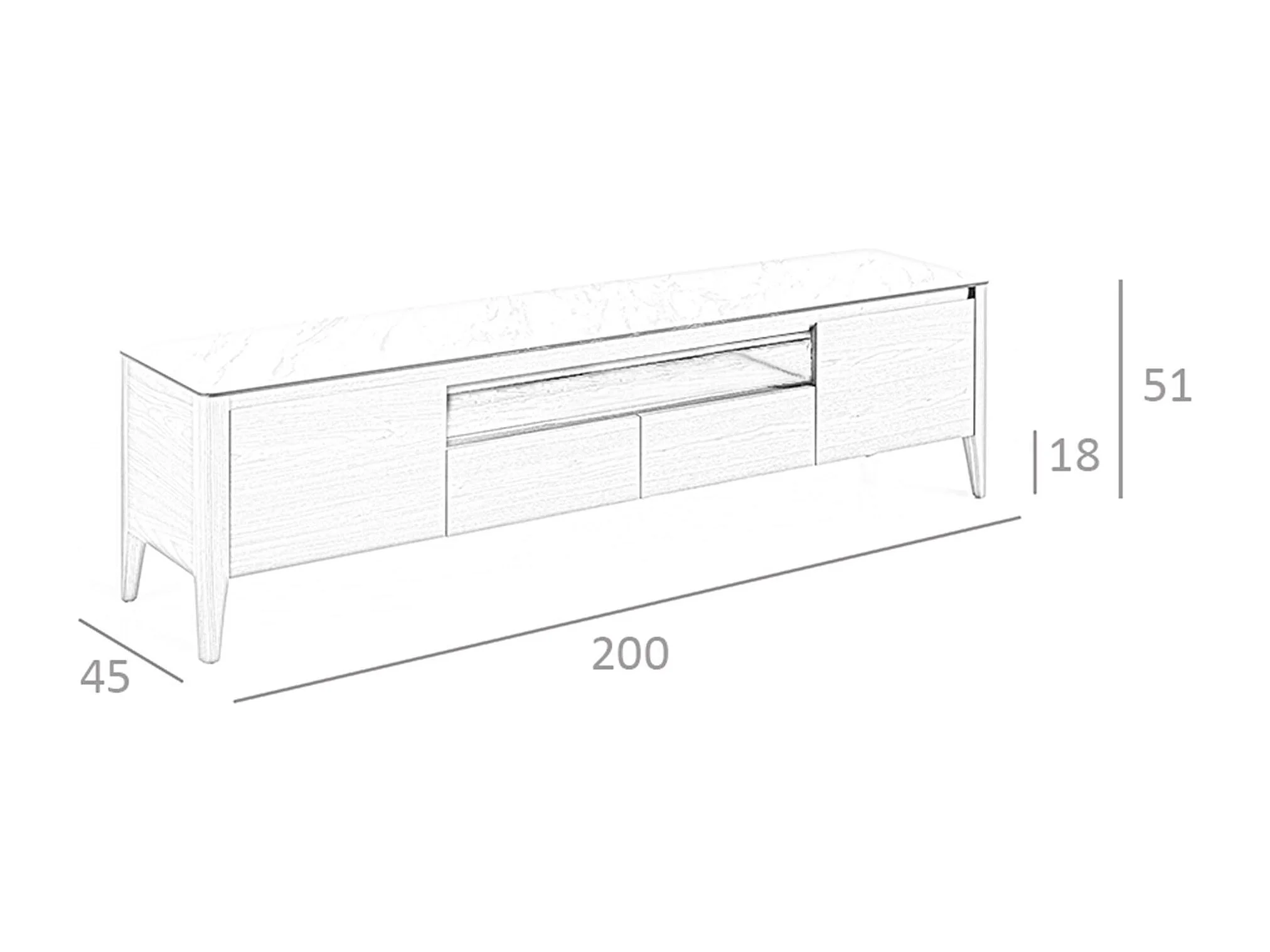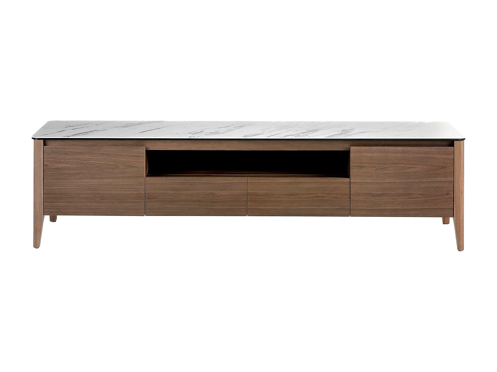 Meuble TV en noyer avec plateau en verre imitation marbre 3083 ANGEL CERDA
