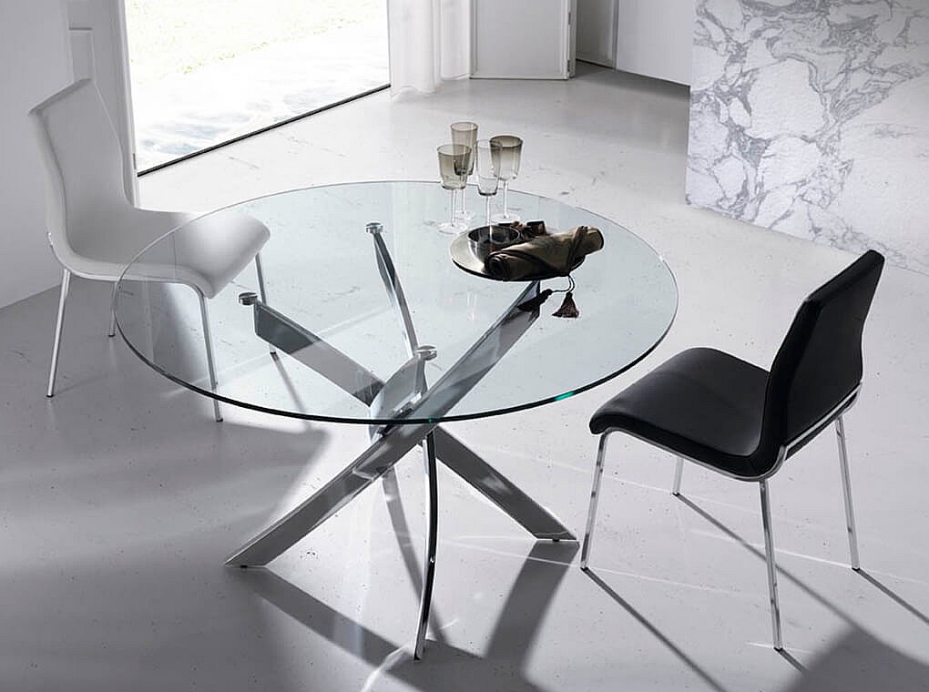Table à manger courbée en acier et verre 1061 ANGEL CERDA