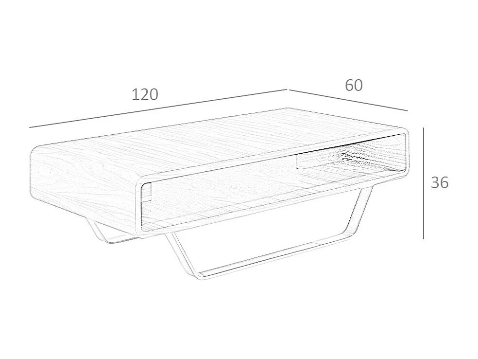Table basse rectangulaire en noyer et acier chromé 2057 ANGEL CERDA