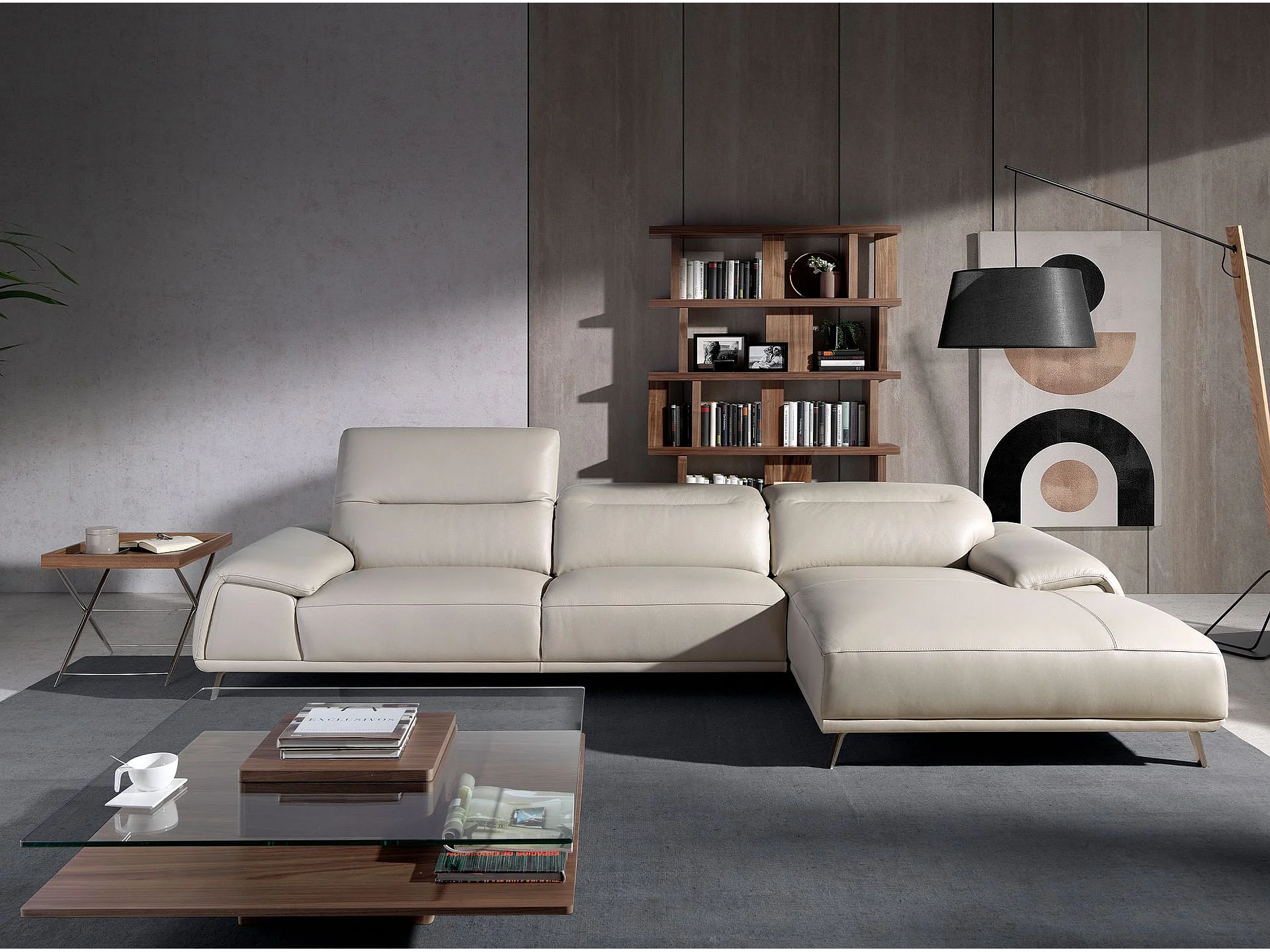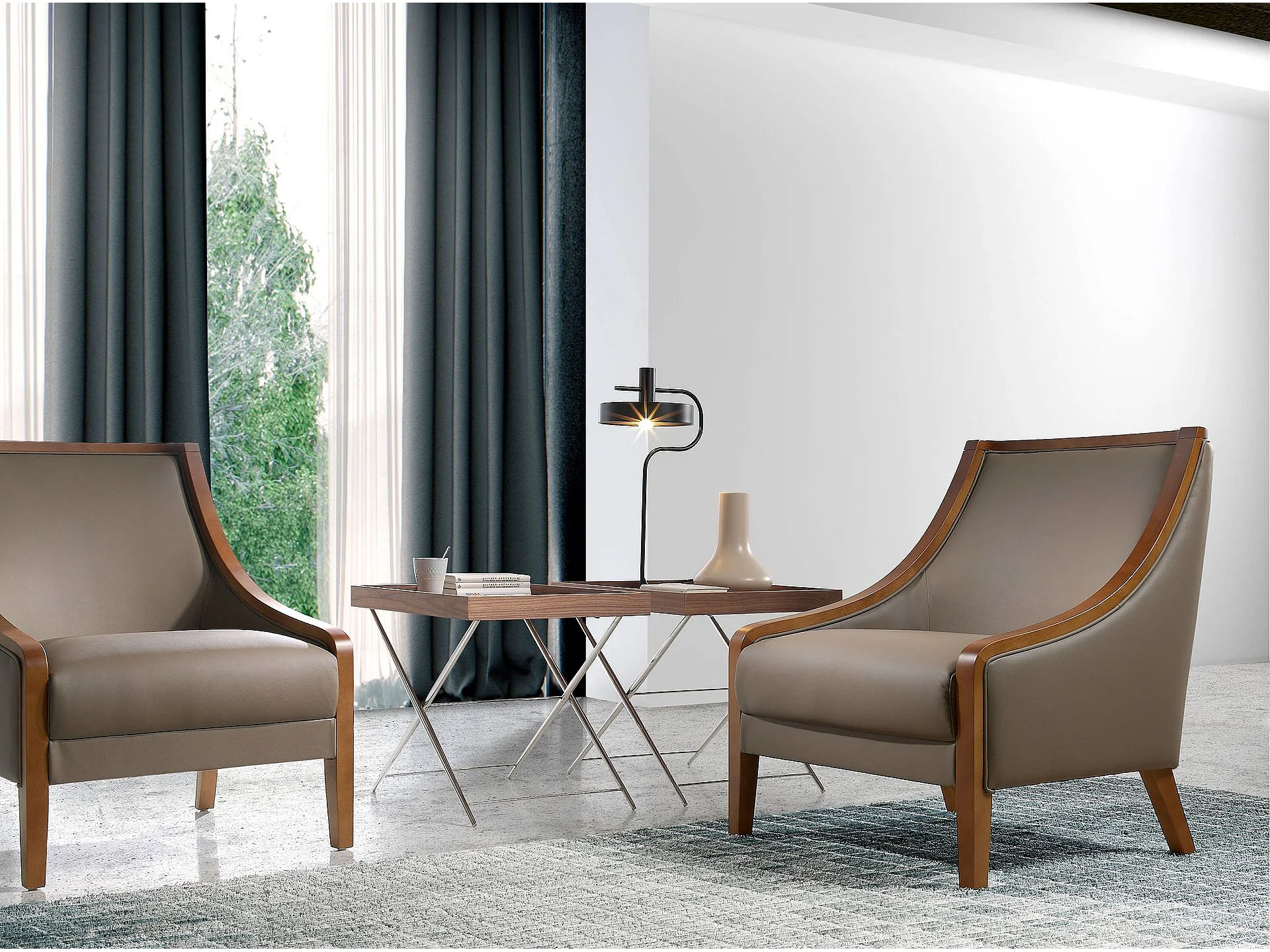 Table d'angle rectangulaire en noyer et acier chromé 2034 ANGEL CERDA