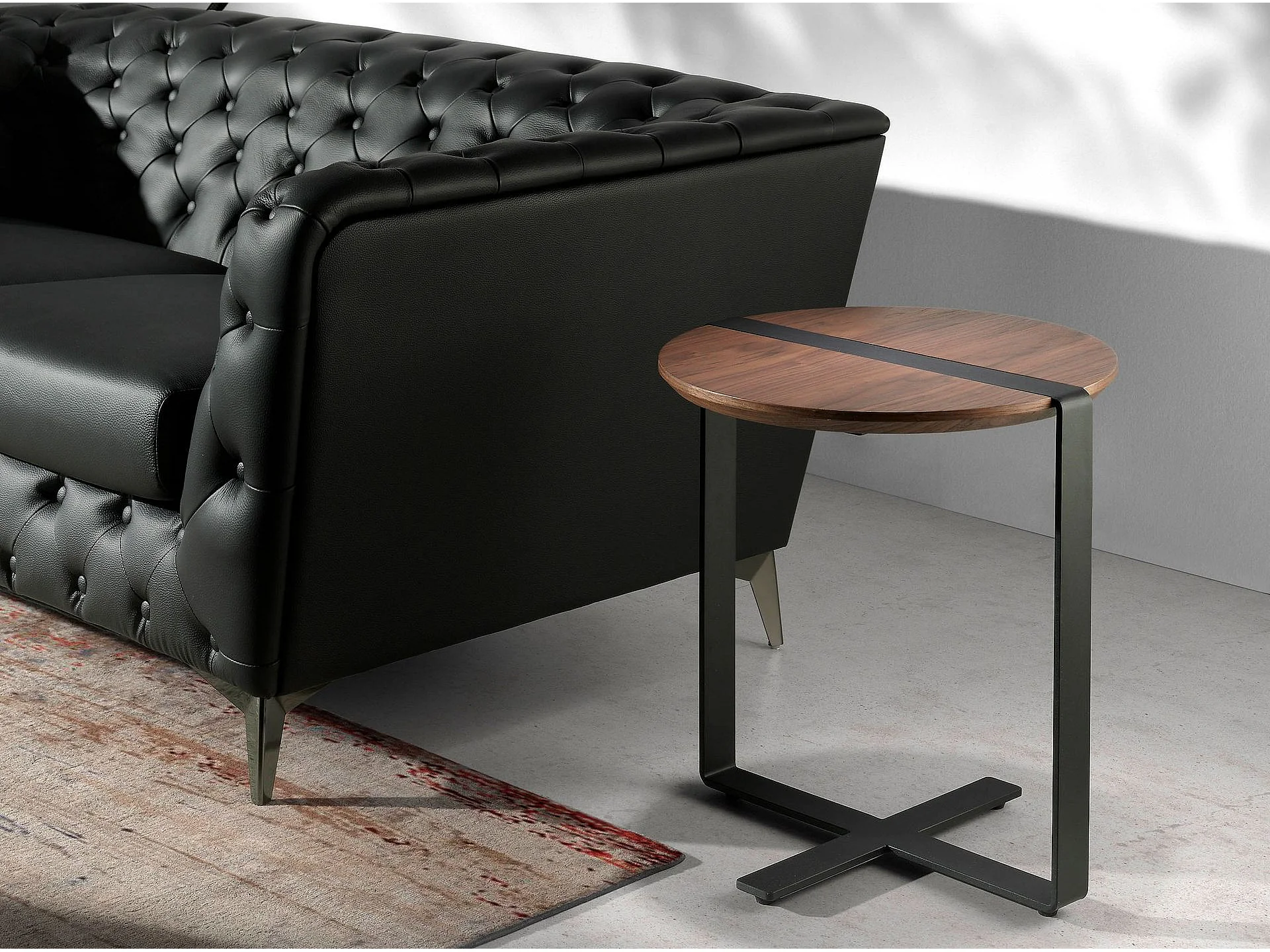 Table d'angle ronde en noyer et acier noir 2054 ANGEL CERDA
