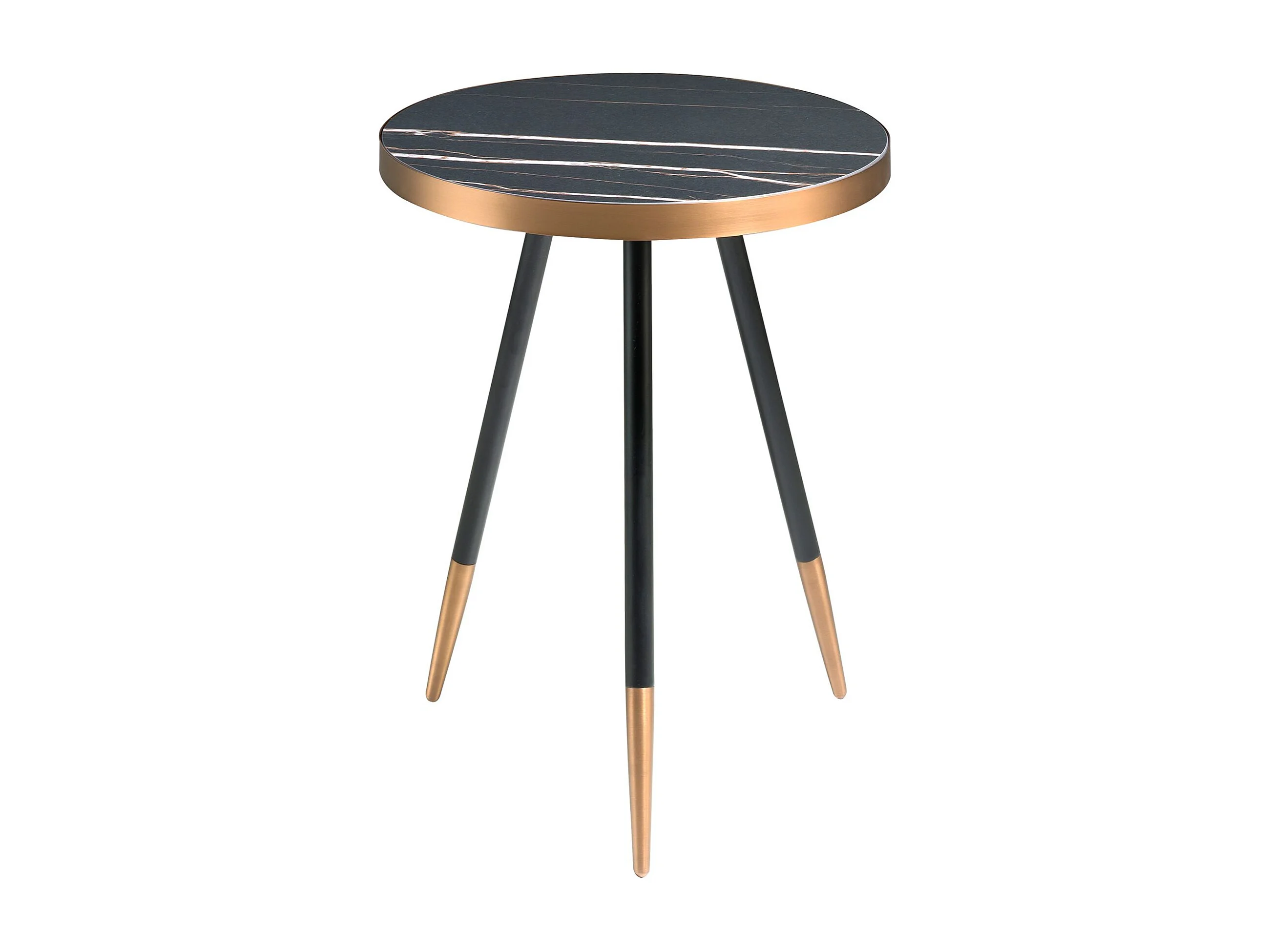 Table d'angle ronde en marbre porcelaine et acier noir 2069 ANGEL CERDA