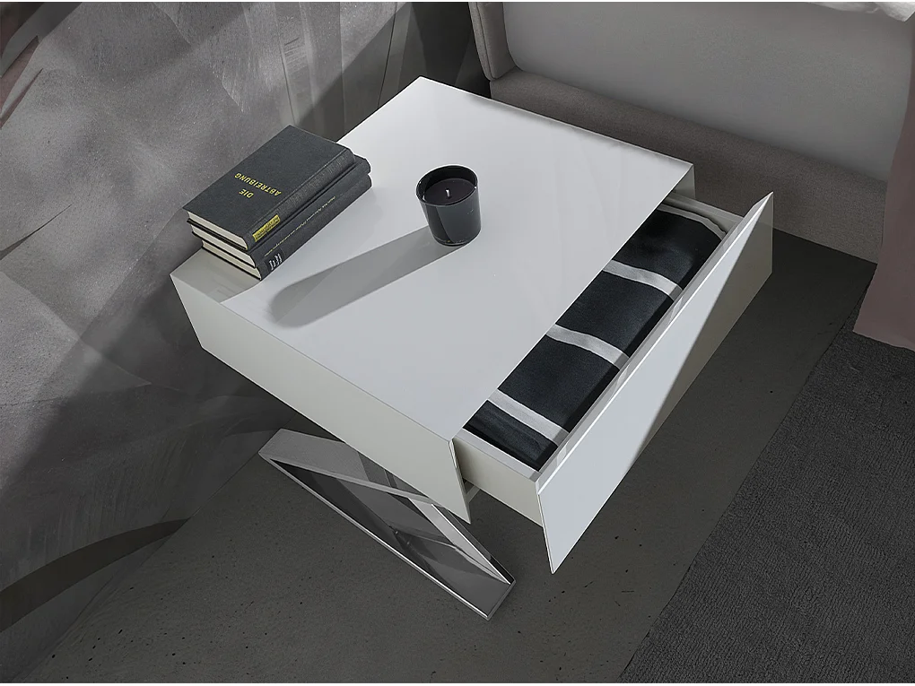 Table de chevet en bois blanc et acier chromé 7007 ANGEL CERDA