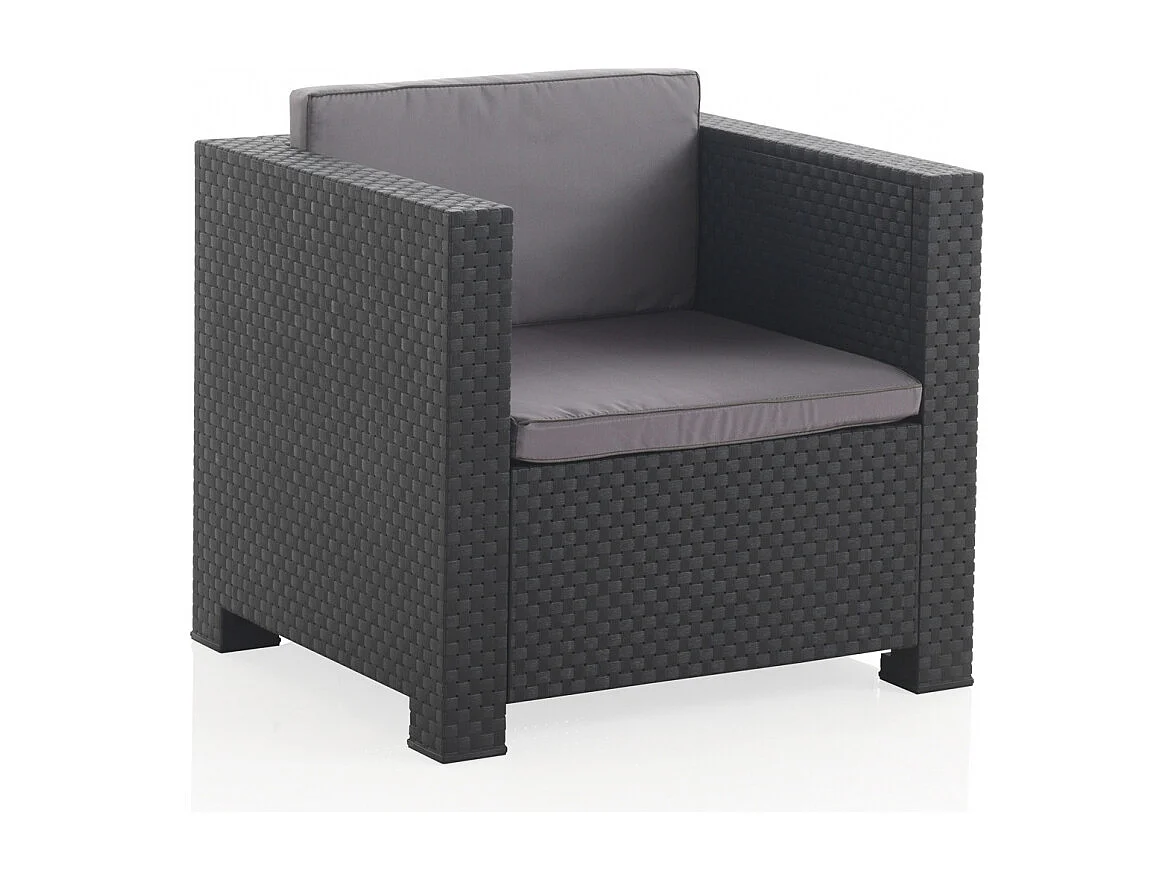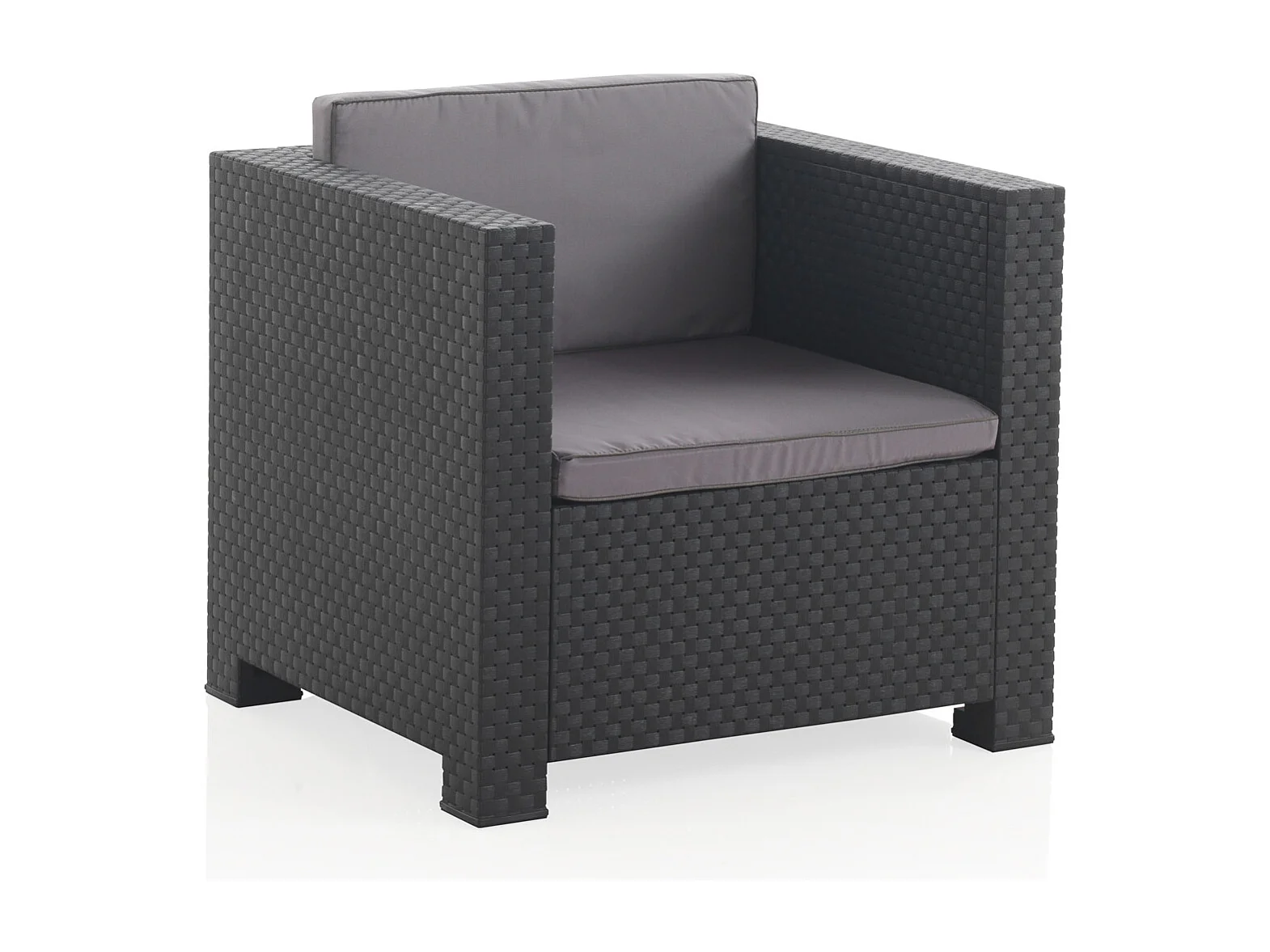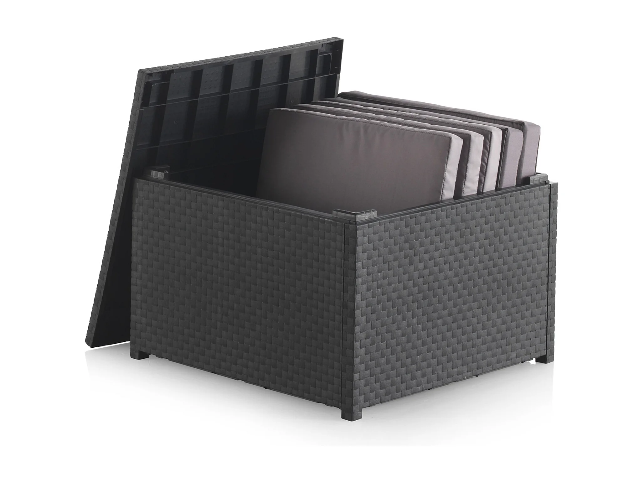 Salon de jardin 4 places effet résine injectée gris + coffre ANKARA
