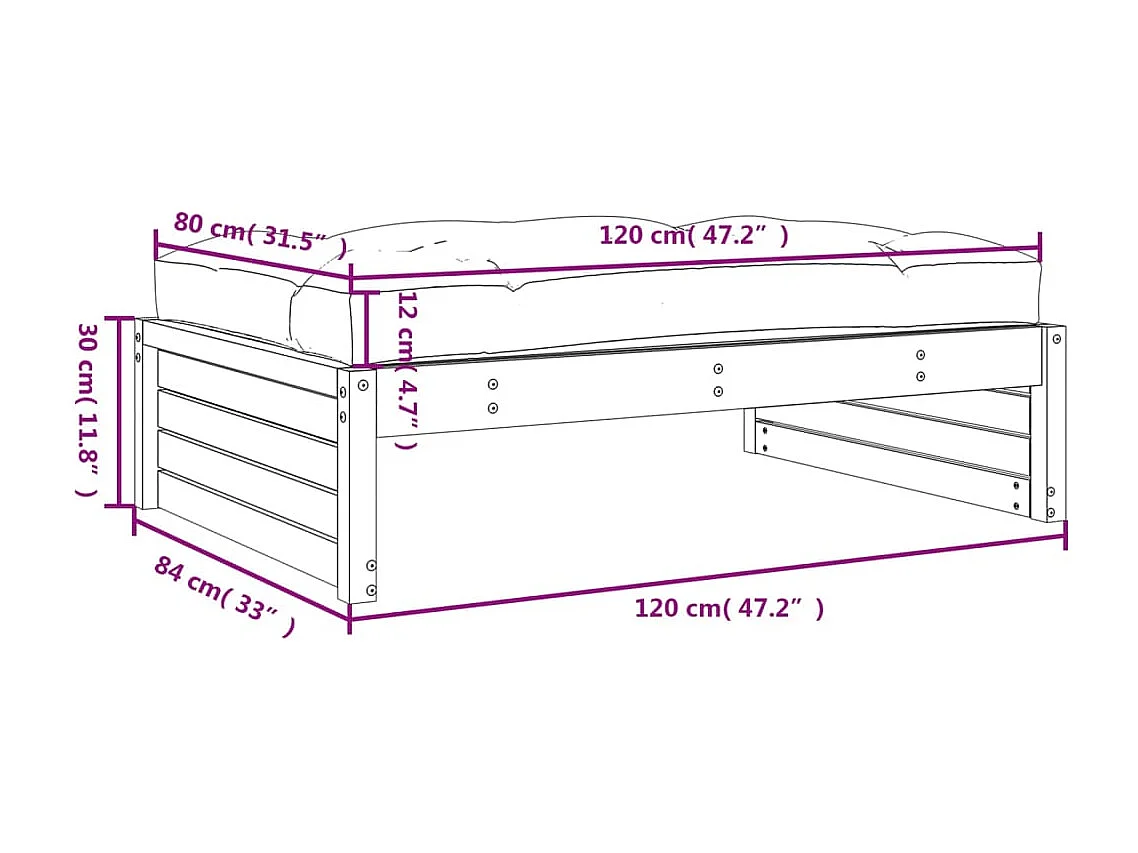 Anne-Camille Repose-pied de jardin 120x80 cm bois de pin massif