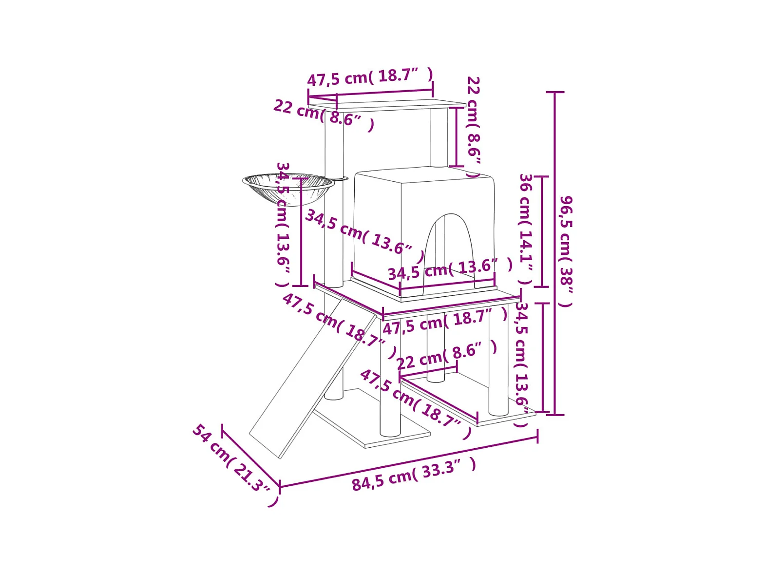 Anne-Lise Arbre à chat avec griffoirs en sisal gris foncé 96,5 cm
