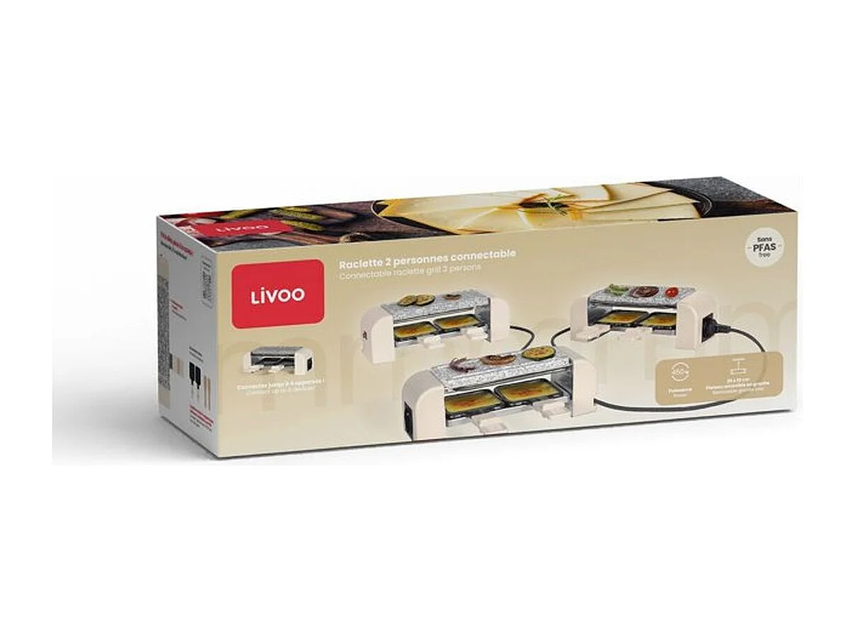 Appareil a raclette connectable - LIVOO - DOC310C - 2 personnes - 450 W - Thermostat automatique