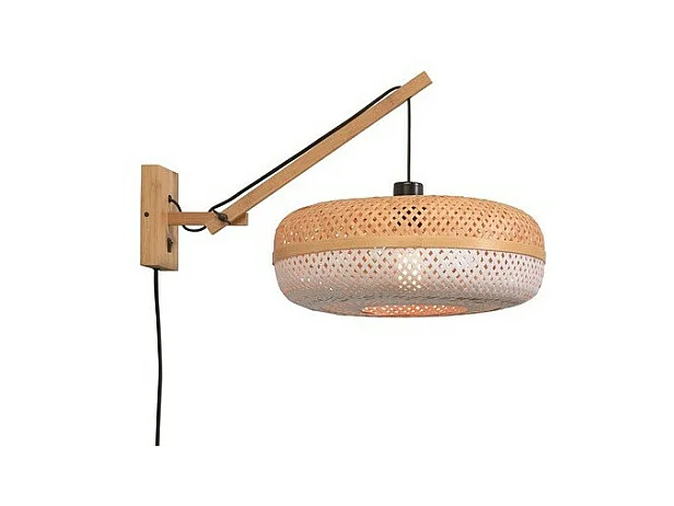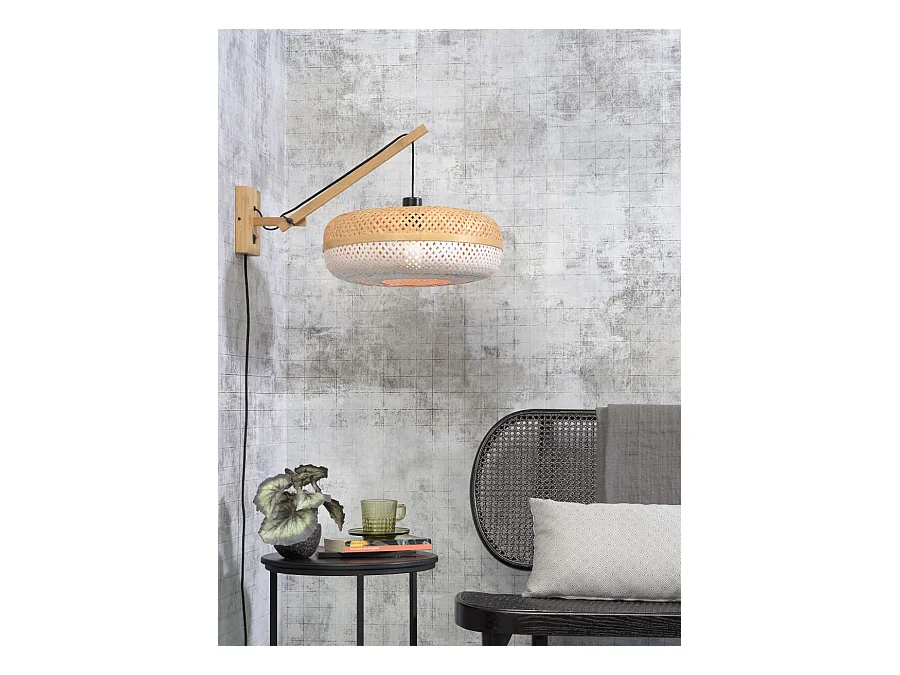 Applique bambou avec bras et abat-jour bicolore
