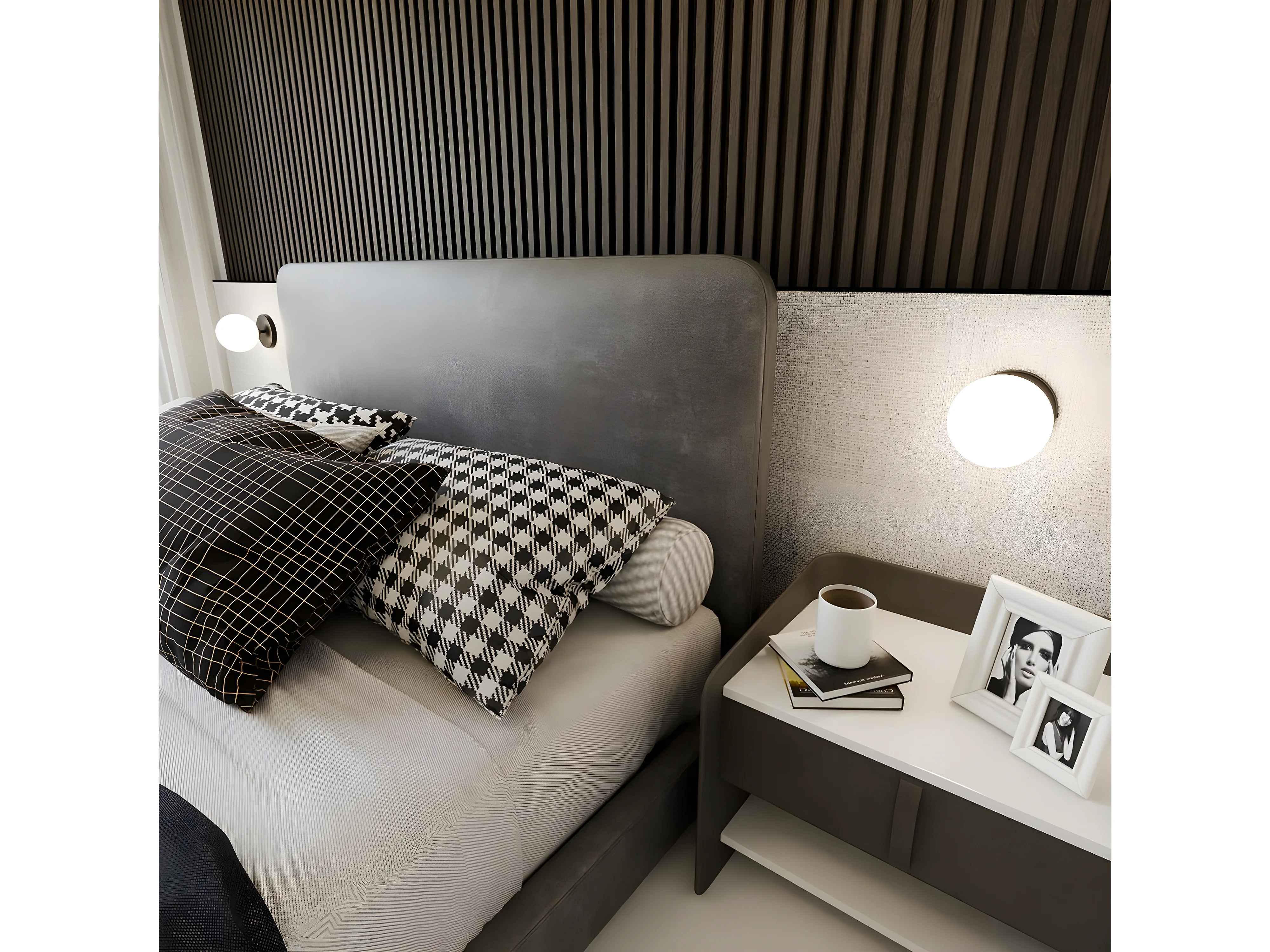 Ensemble complet literie déco tête de lit capitonnée + sommiers coffre + matelas + surmatelas - 180 x 200 cm - Tissu - Gris clair - KIDA de YSMÉE