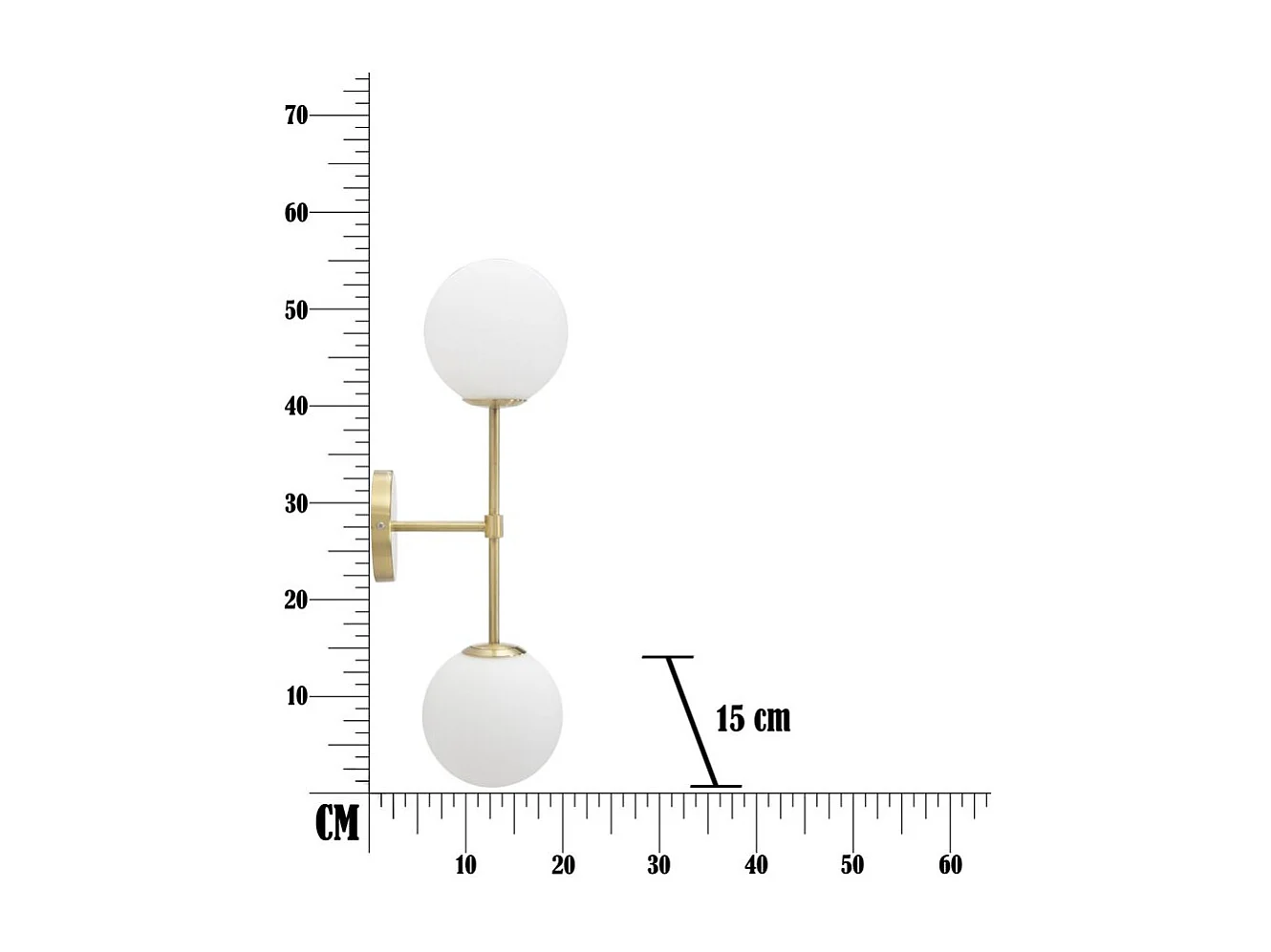 Applique Murale 2 Sphères "Glamy Doppia" 55cm Blanc & Or