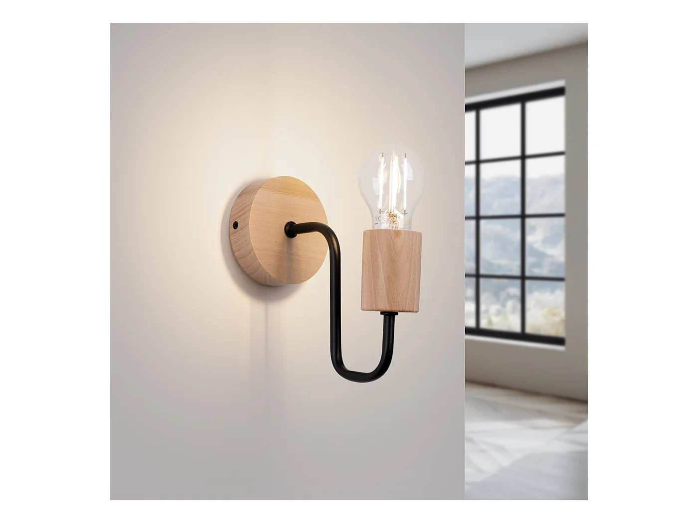 Applique Timbo Grenier En Acier/Bois - 1 Sources Lumineuses - L.8 X H.18,5 Cm - Noir/Bois Naturel