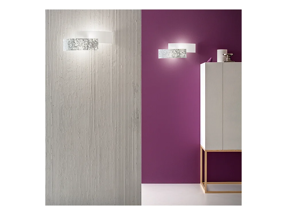 Applique Lara 2 lumières E14 verre blanc feuille d'argent - Applique au style élégant 46x18cm, max 2x42W, ampoule exclue