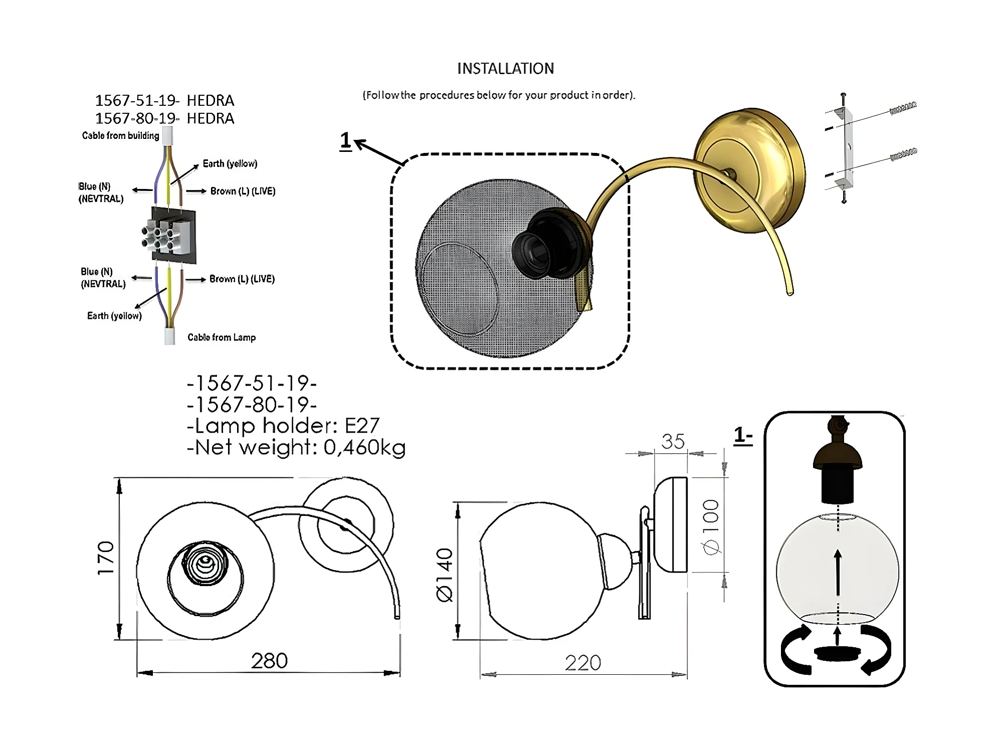 Applique Cesena, Or, 22x28x17 cm, EPIKASA