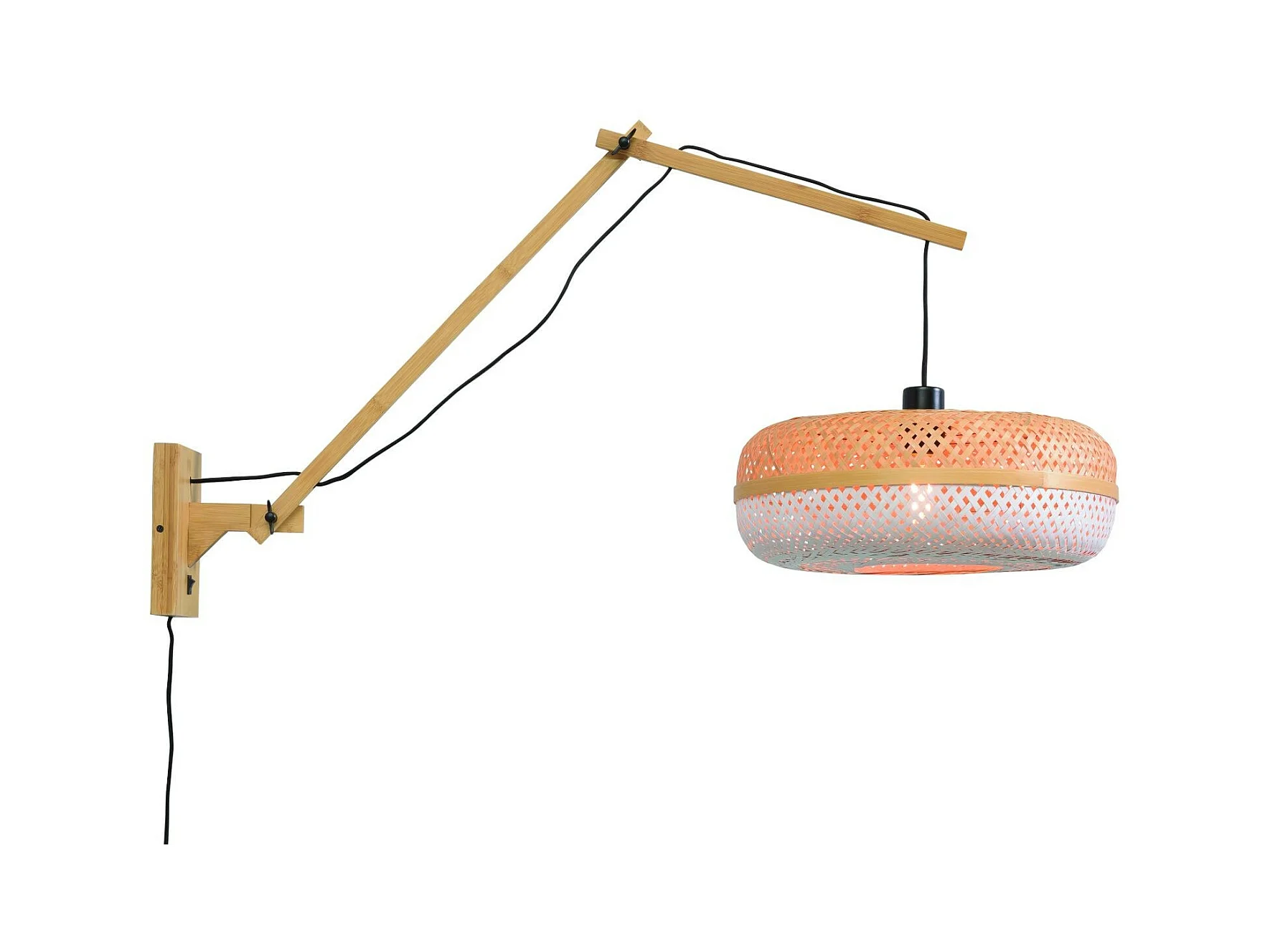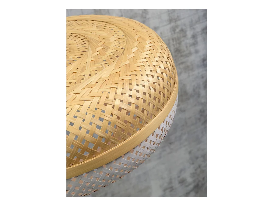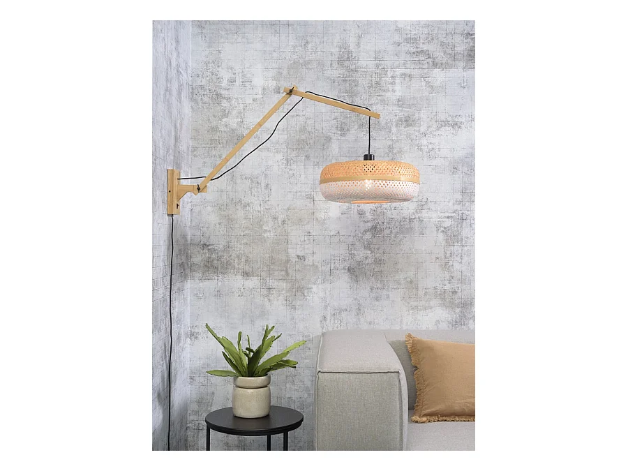 Applique murale en bambou marron avec bras et abat-jour bicolores
