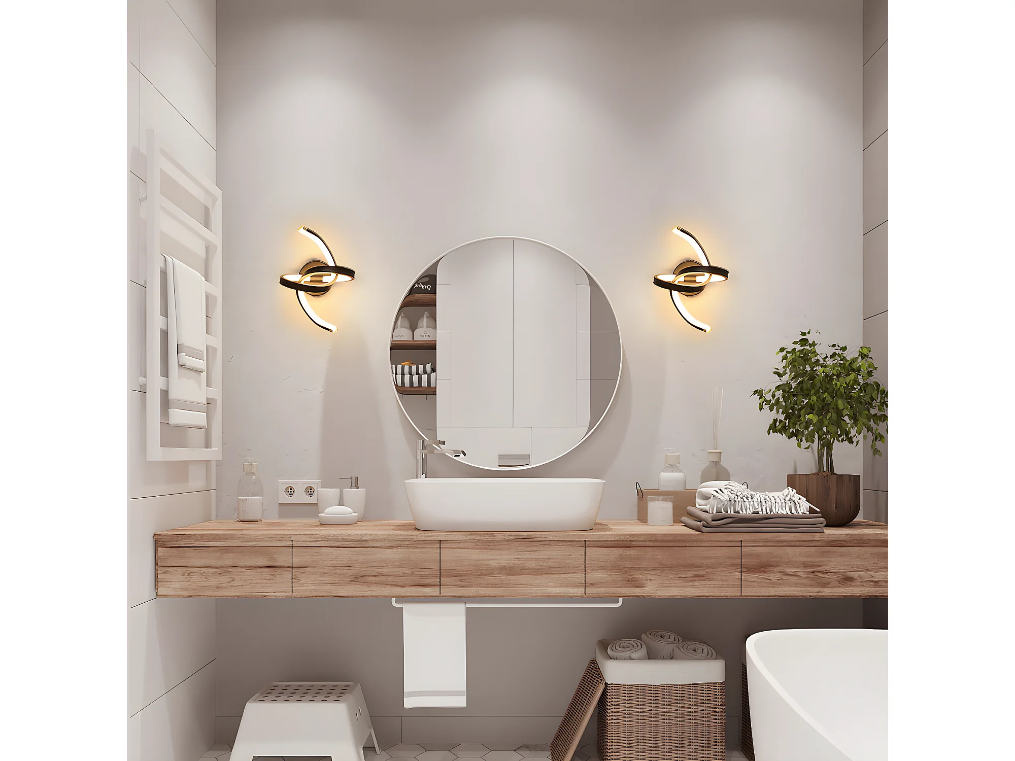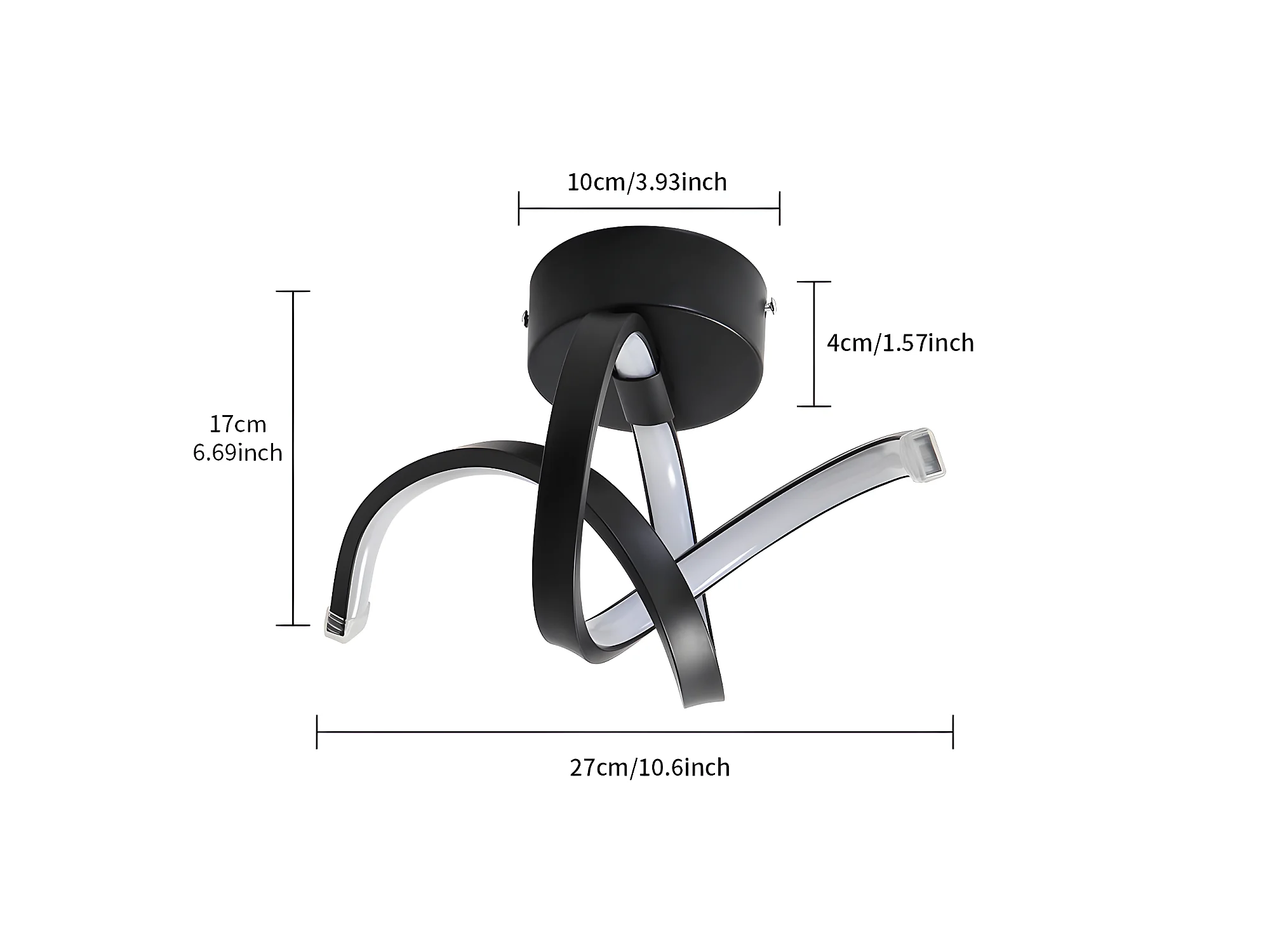 Applique murale interieur courbe moderne, noir, 27*17cm, 20w, en metal