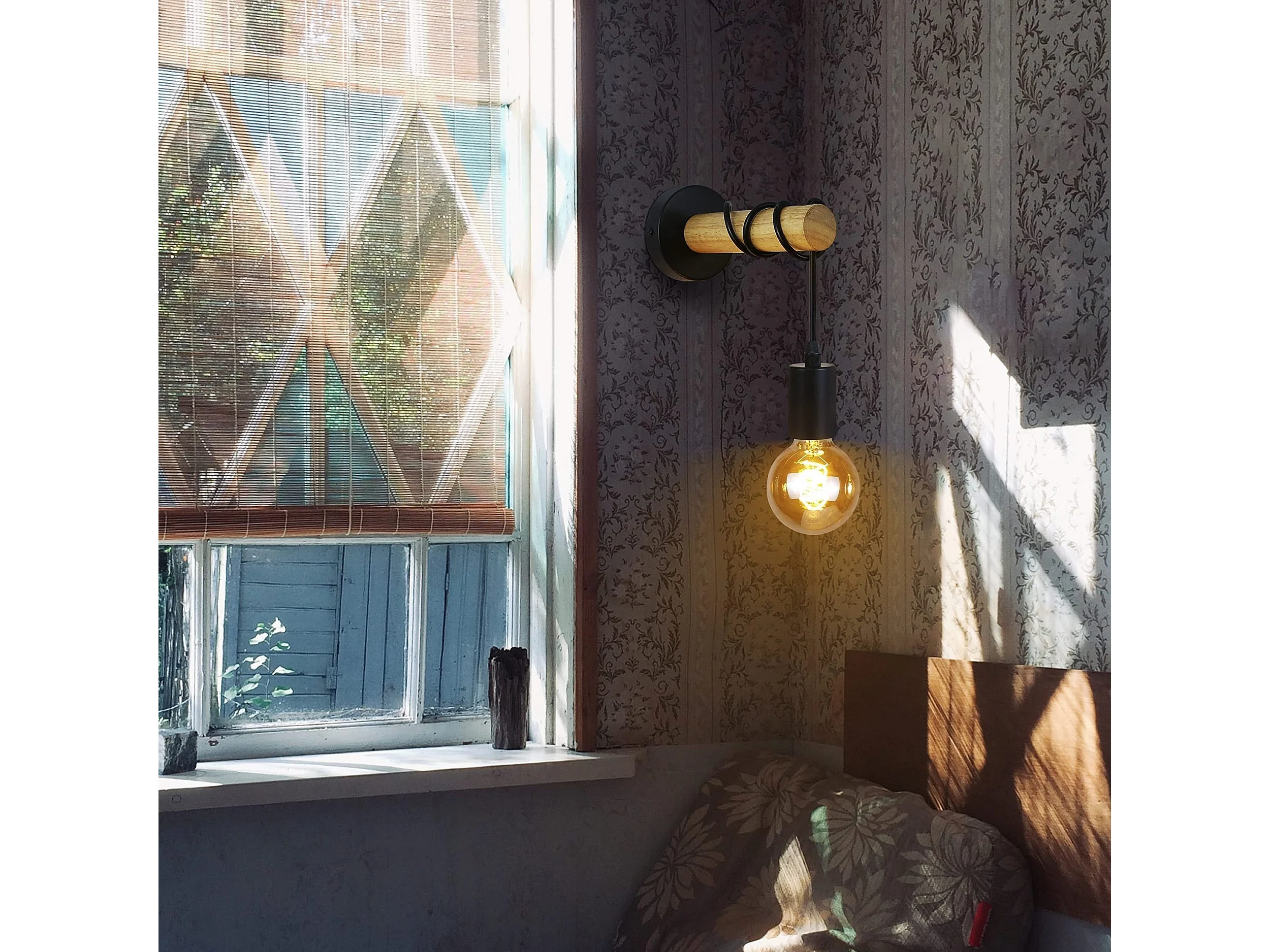 Applique murale NETTLIFE rétro industrielle bois noir métal E27 bureau