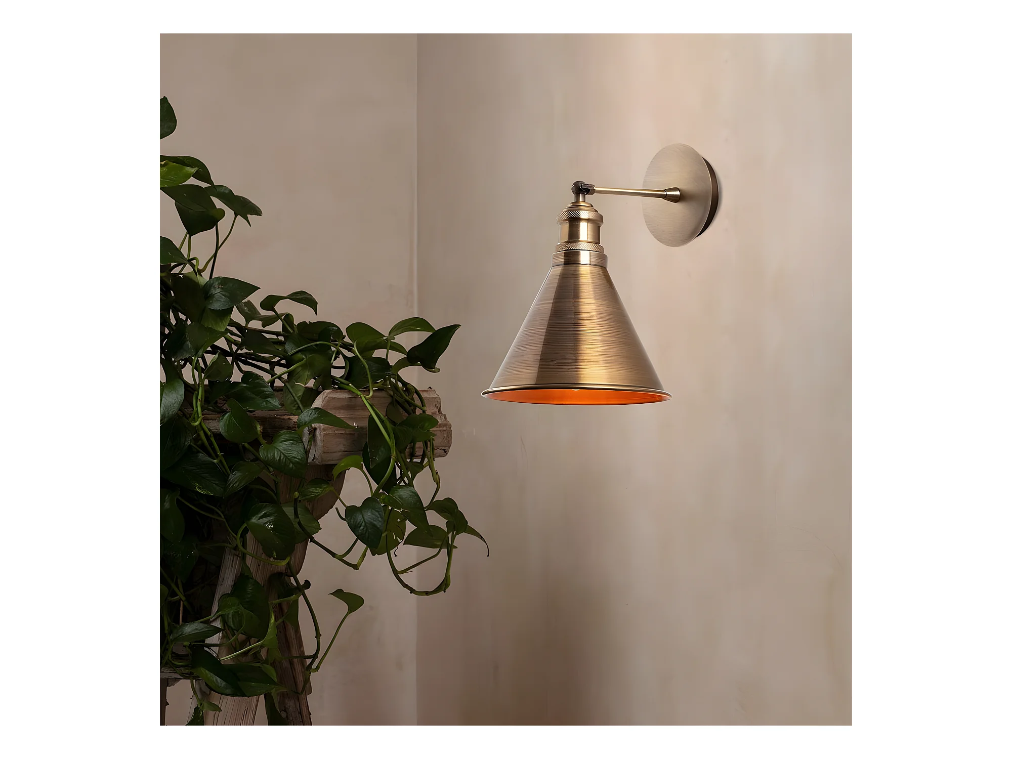 Applique murale style rétro vintage Harvey avec abat-jour doré antique 1xE27