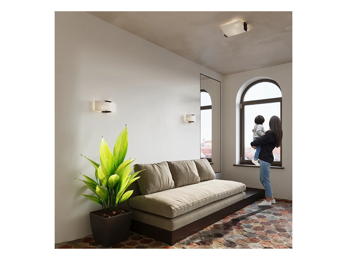 Appliques Nerilo moderne en bois/verre - 2 sources lumineuses 4000K - L.33 x H.14 cm - wengé/blanc