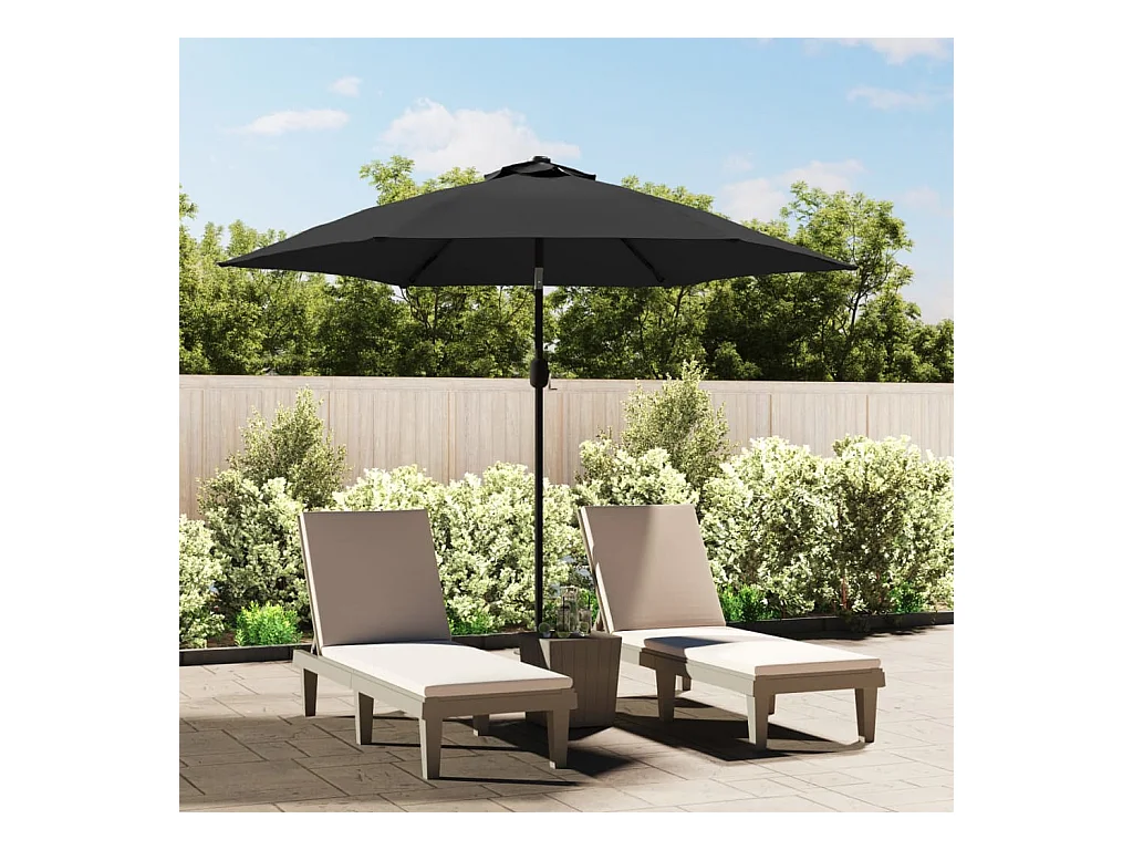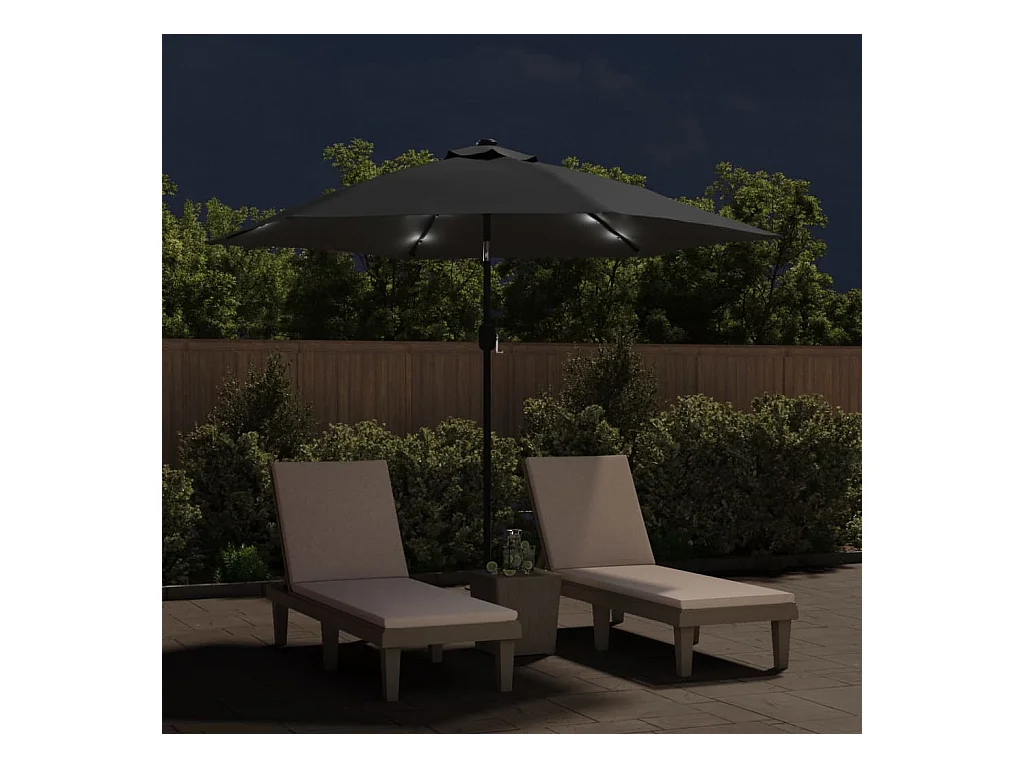 Prudence Parasol de jardin avec LED et mât en acier noir 2x3 m