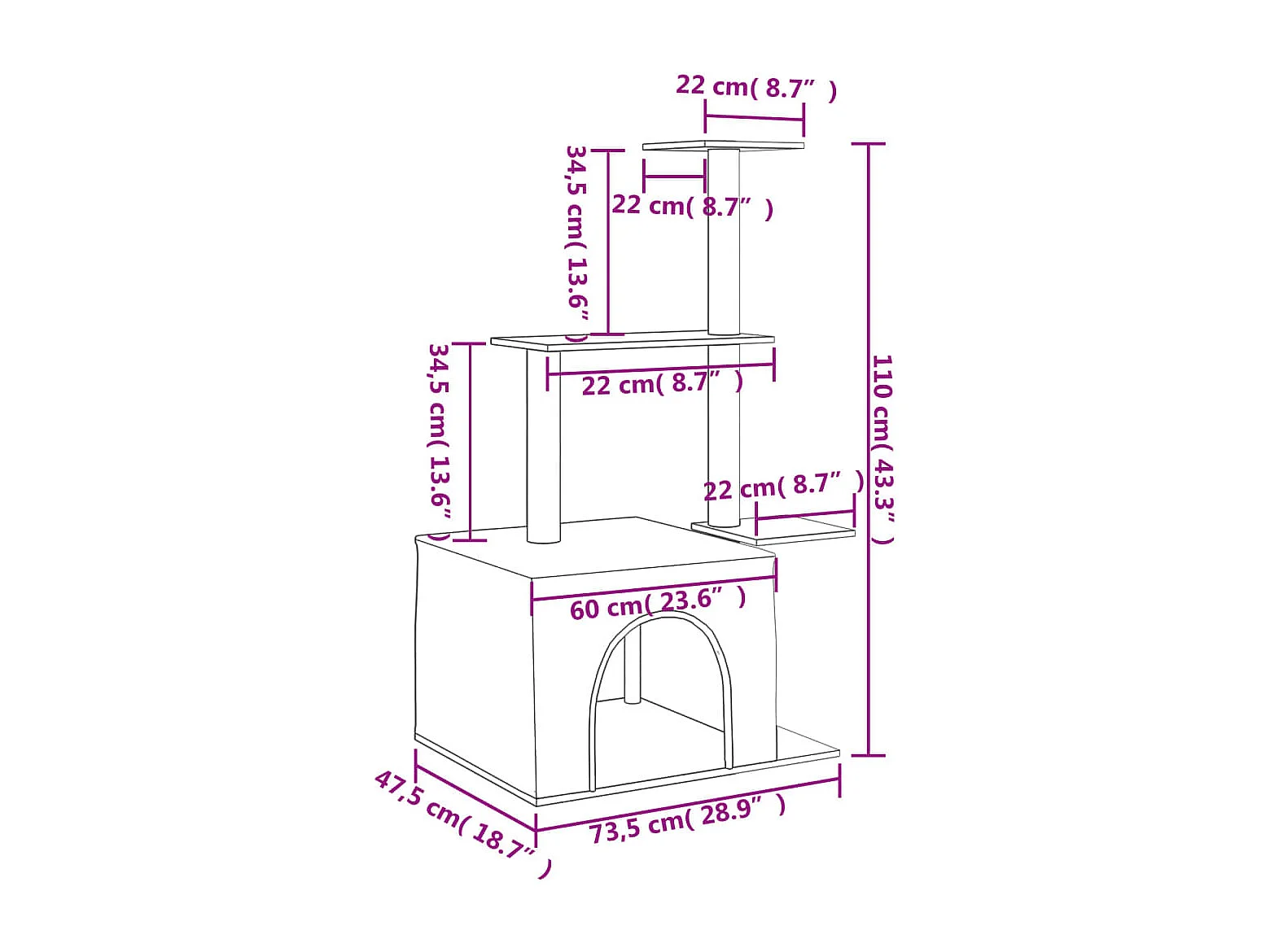 Arbre à chat avec griffoirs en sisal crème 110 cm
