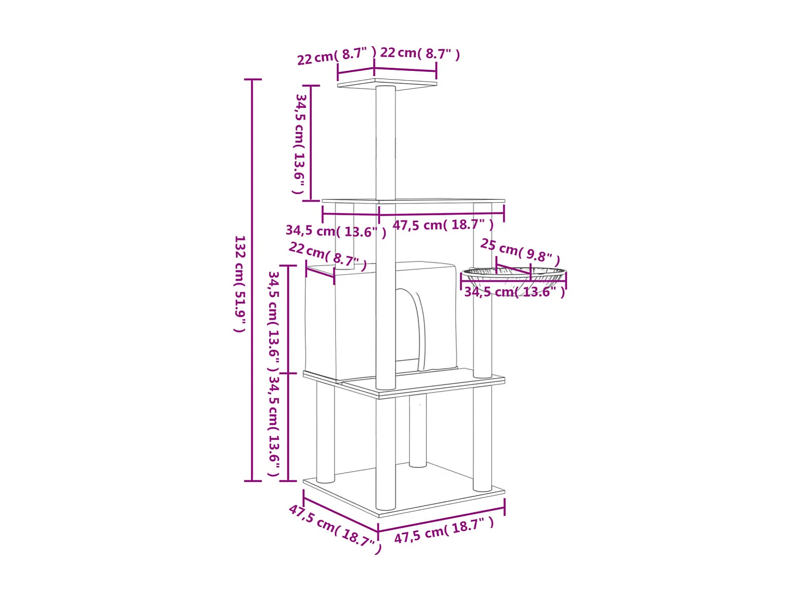 Arbre à chat avec griffoirs en sisal crème 132 cm