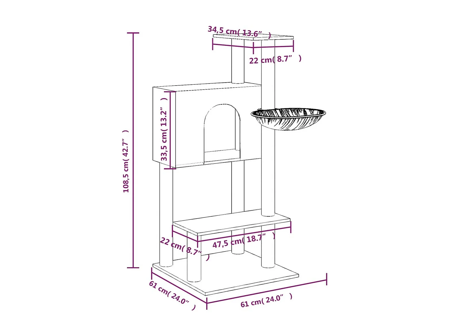 Arbre à chat avec griffoirs en sisal Gris clair 108,5 cm