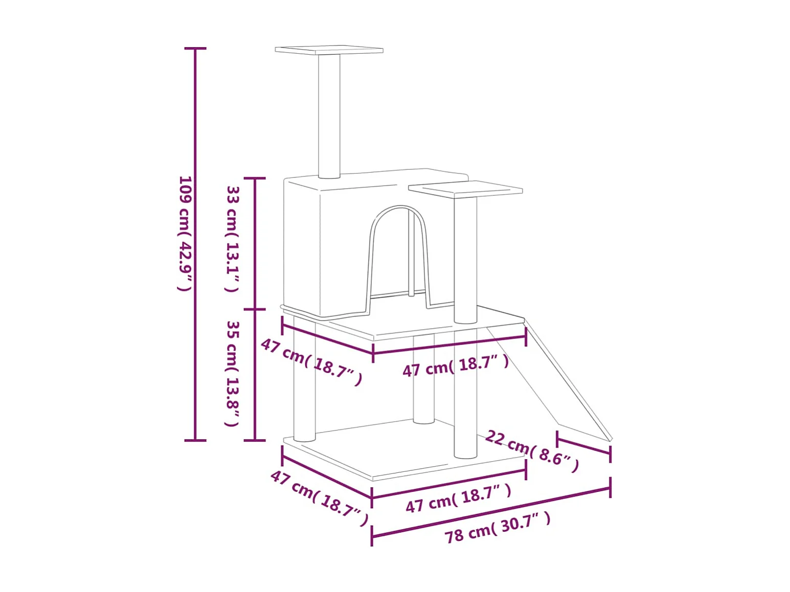 Arbre à chat avec griffoirs en sisal Gris clair 109 cm