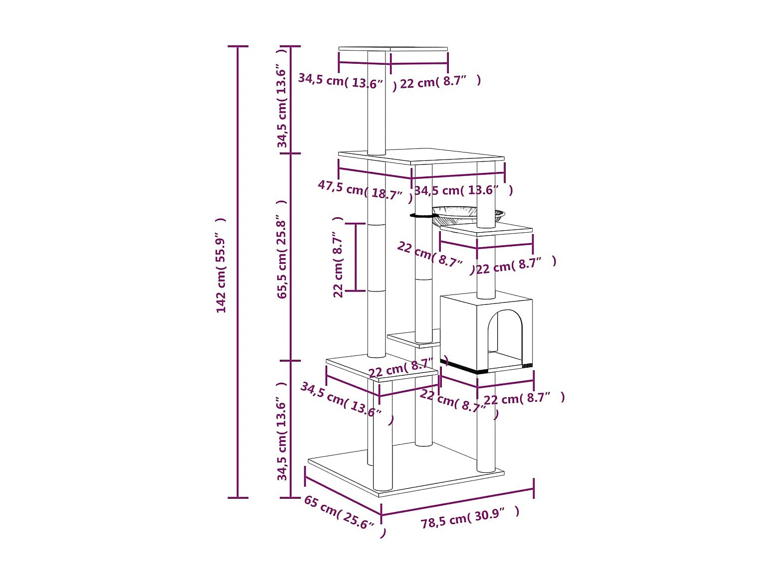 Arbre à chat avec griffoirs en sisal Gris foncé 142 cm