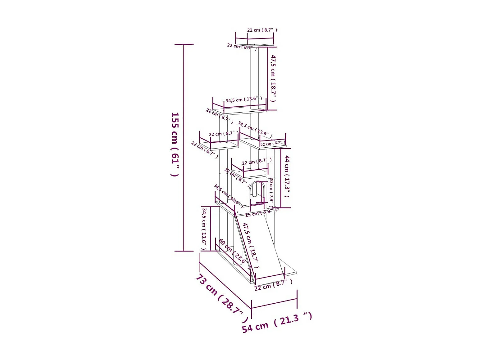 Arbre à chat avec griffoirs en sisal Gris foncé 155 cm