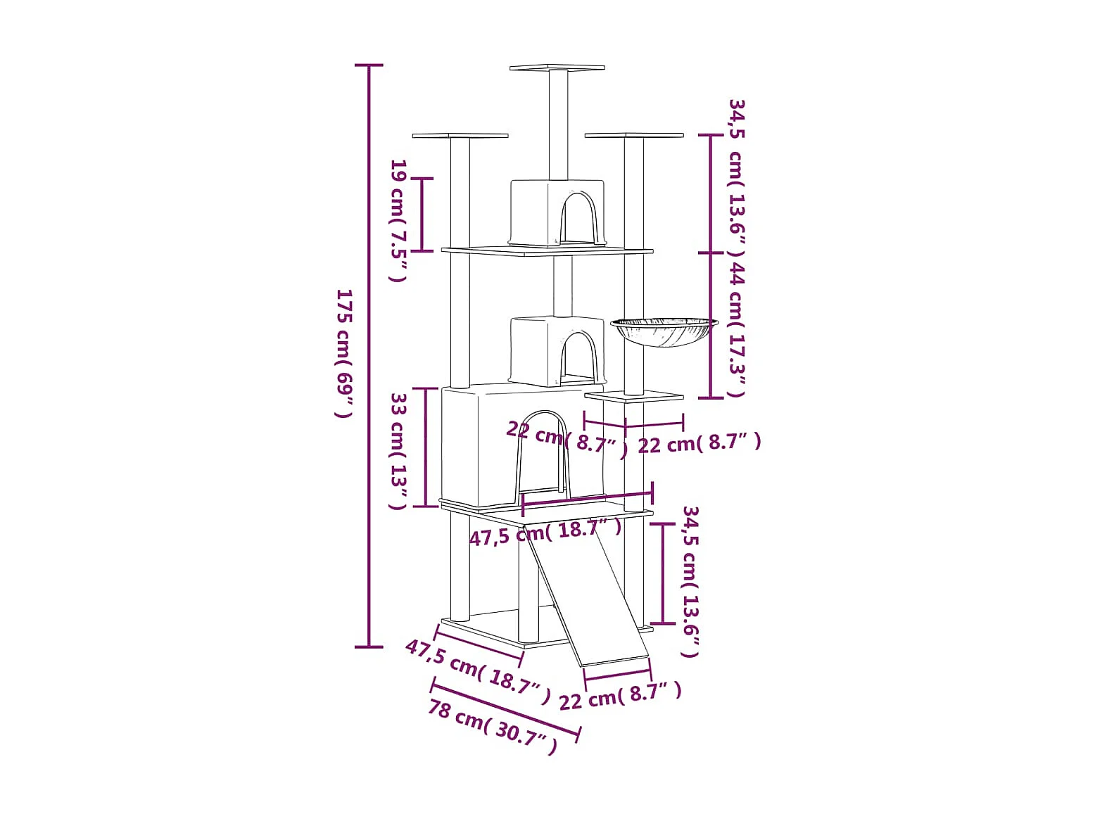 Arbre à chat avec griffoirs en sisal Gris foncé 175 cm
